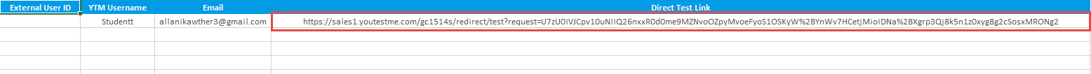 Note: The Excel file will also contain meeting links if the test is proctored using conference tools.