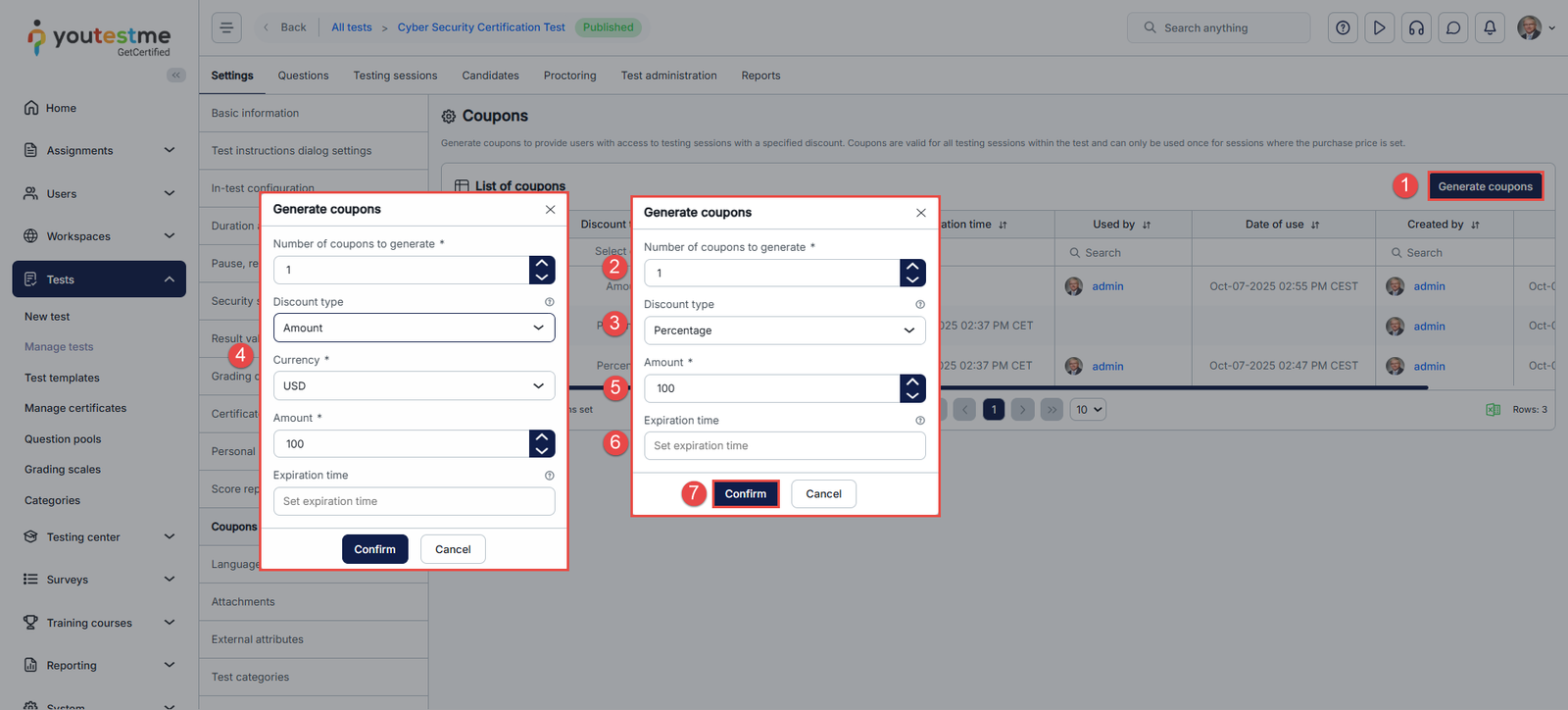 - The date and time the coupon was generated is displayed in the Creation date column.