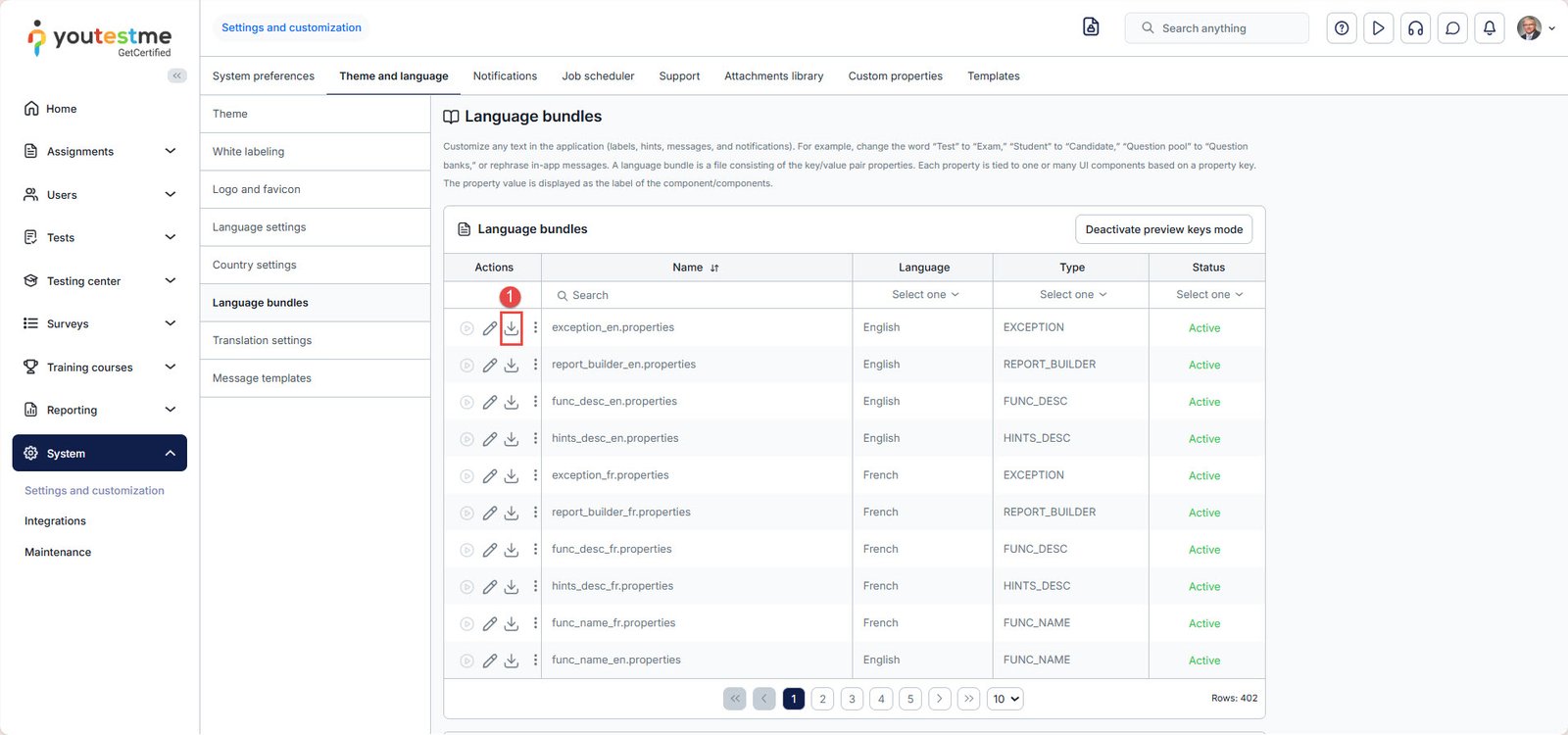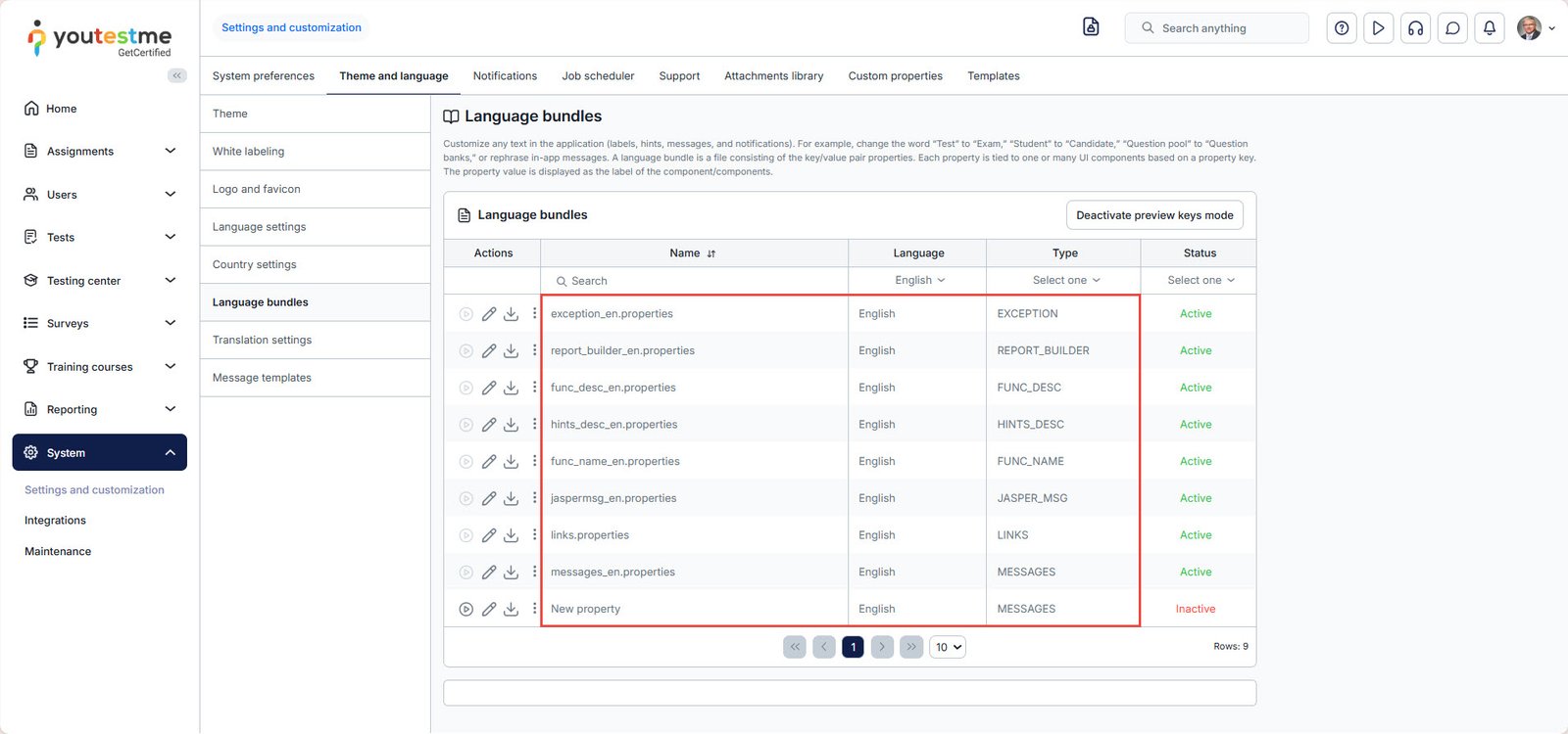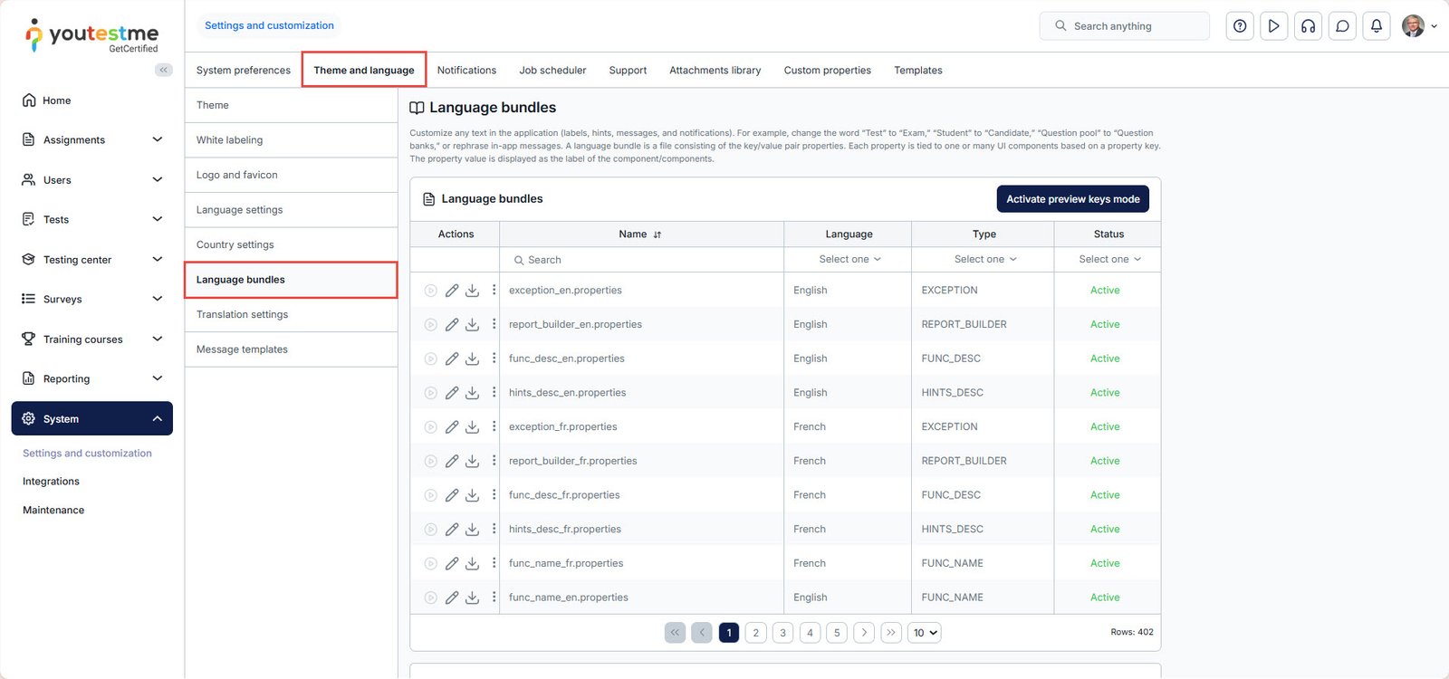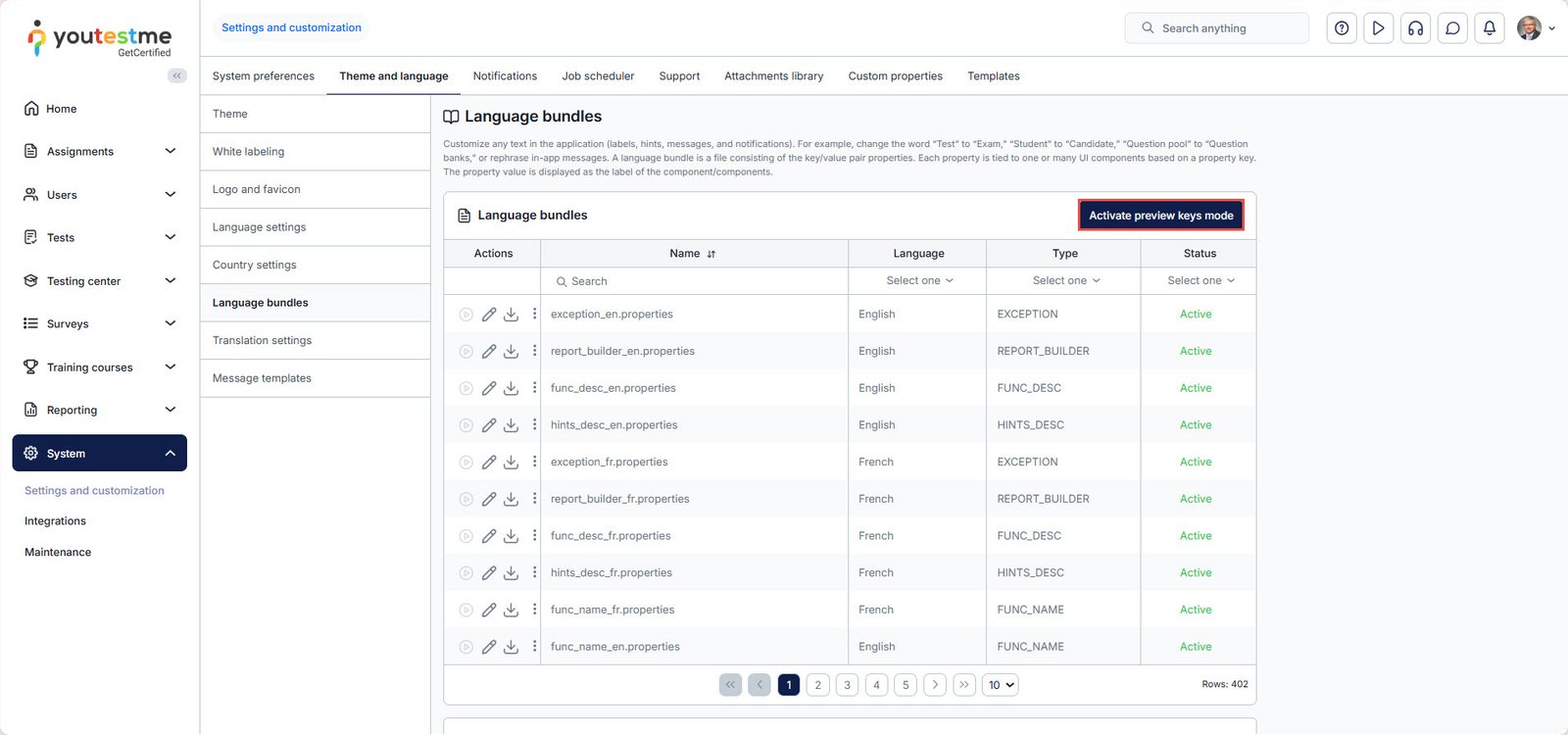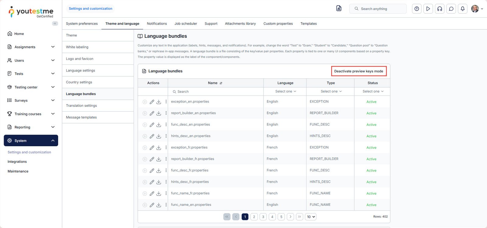 To turn off the preview keys mode, click the key icon again. To completely deactivate this feature, click the “Deactivate preview keys mode” button, available in the Language bundles tab.