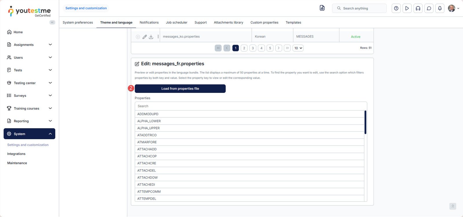 Navigate to the Theme and language tab, then select the Language bundles option.