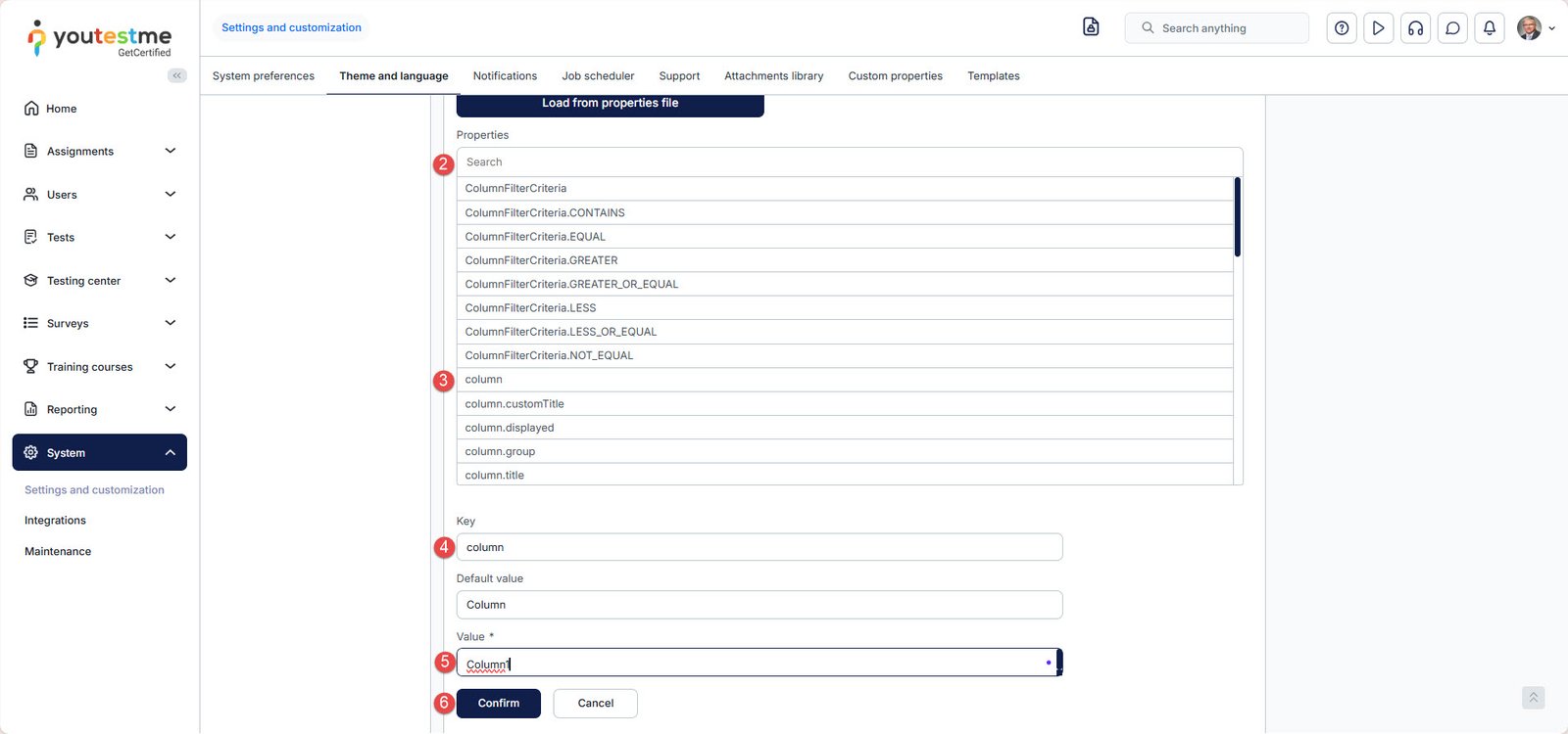 - Load the file by clicking the Load from properties file button. The Choose file dialog will appear. Choose a modified .properties file and confirm your choice.