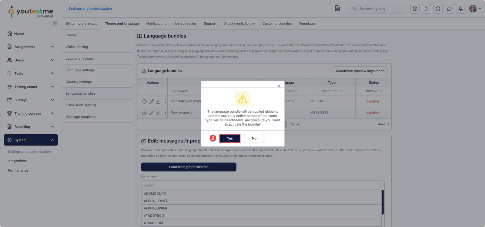 Note:Â Once you activate the language bundle, it will be applied globally, and the currently active bundle of the same type will be deactivated.