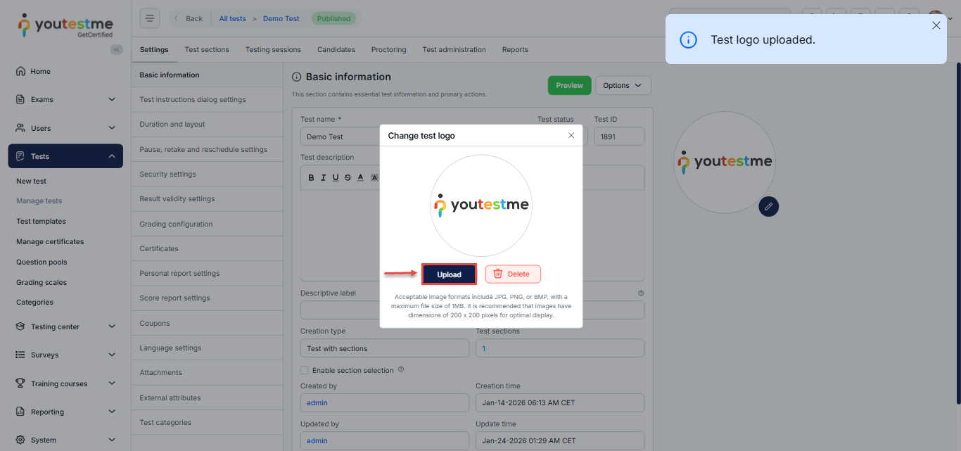 Customize the Test Logo During Test Creation