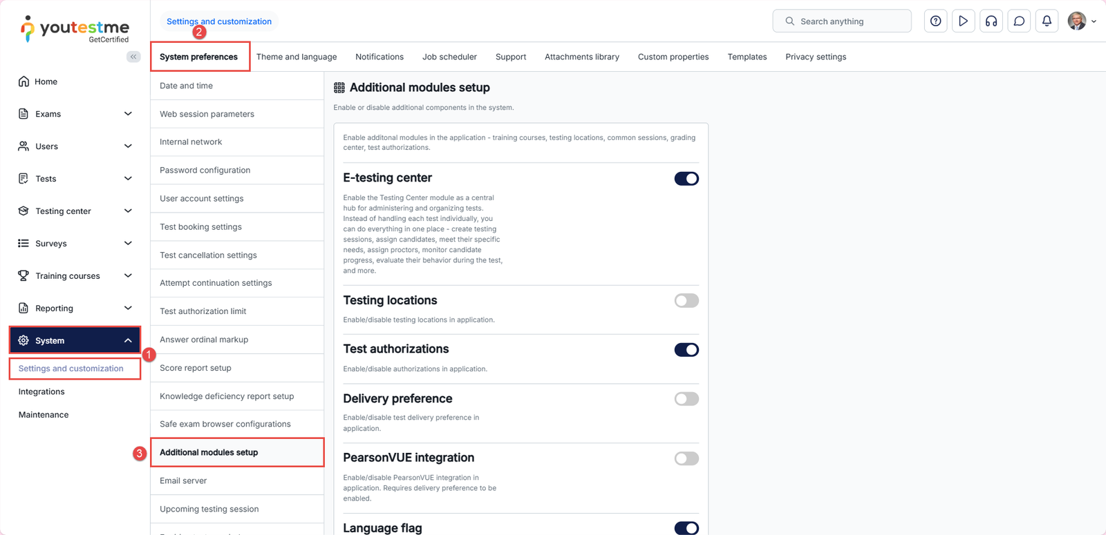 - Navigate to System > Settings and customization.