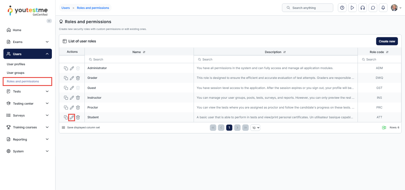 Locate the role for which you want to enforce Single Sign-On (SSO) login. For example, the Student role.