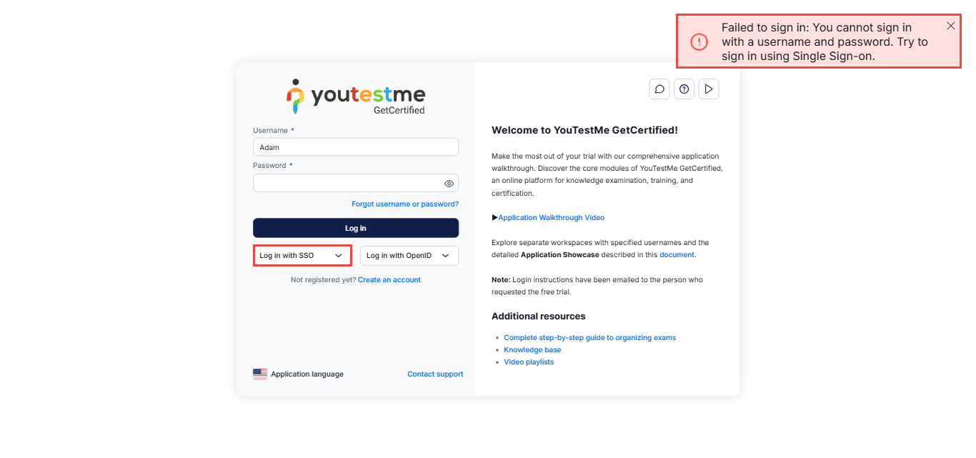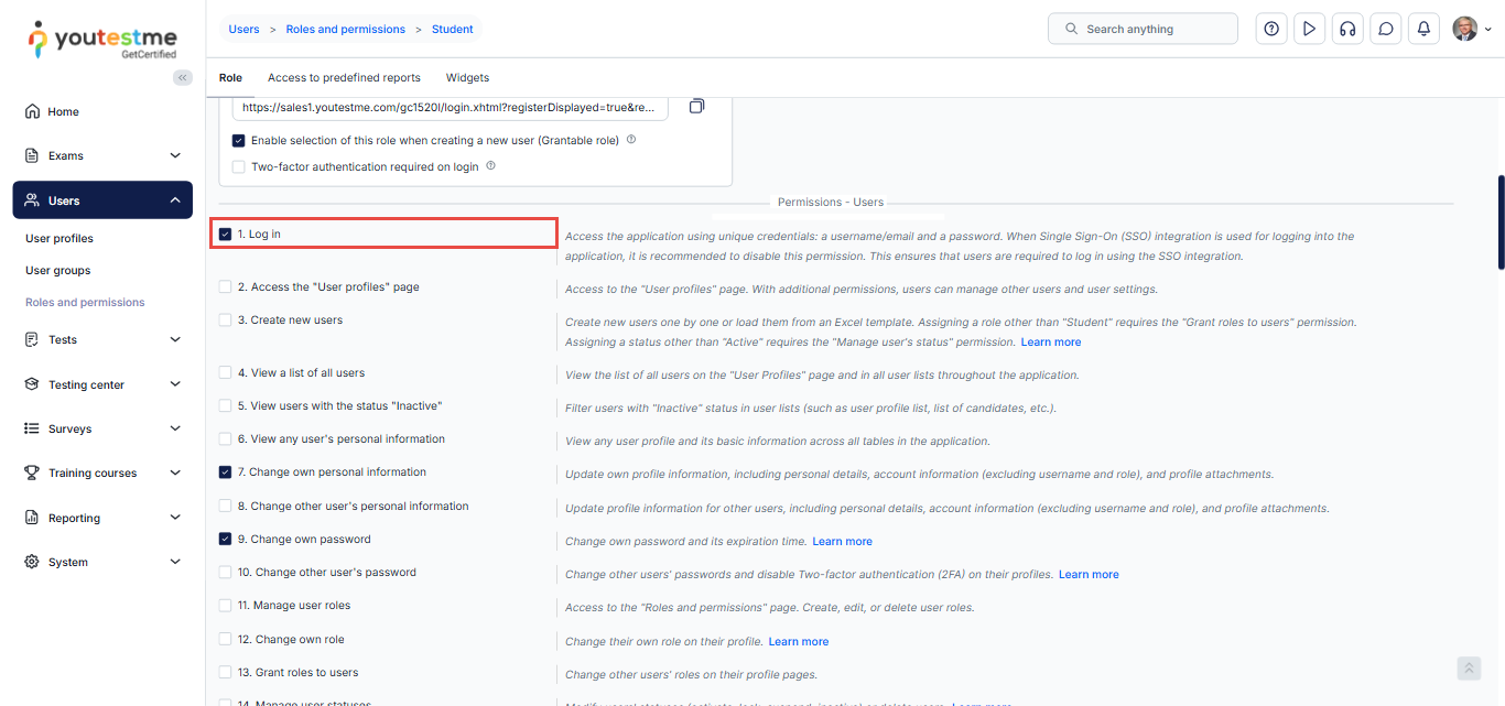 By following these steps and disabling the Log in permission, users associated with the chosen role will be prompted to use the Single Sign-On (SSO) option for logging in.