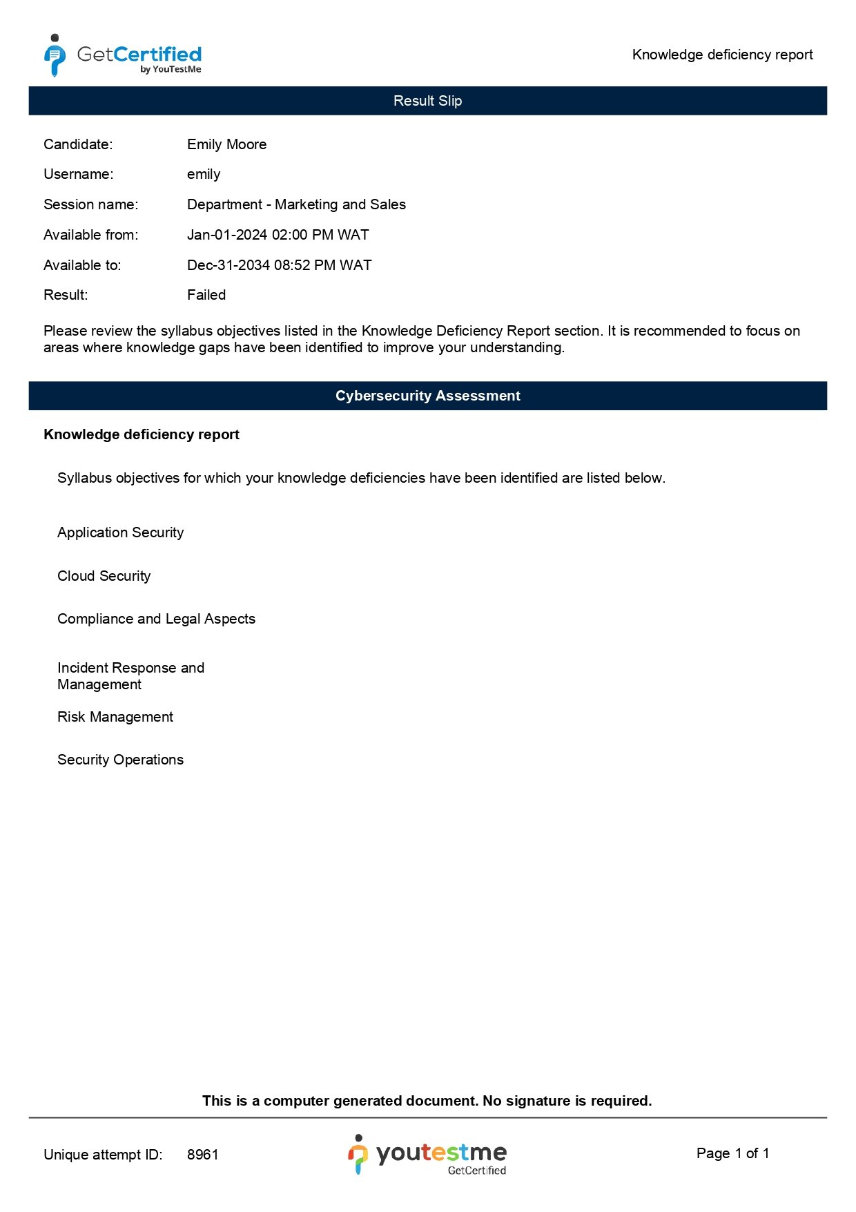 Once this option is enabled, candidates will be able to download their Knowledge deficiency report from their personal report.