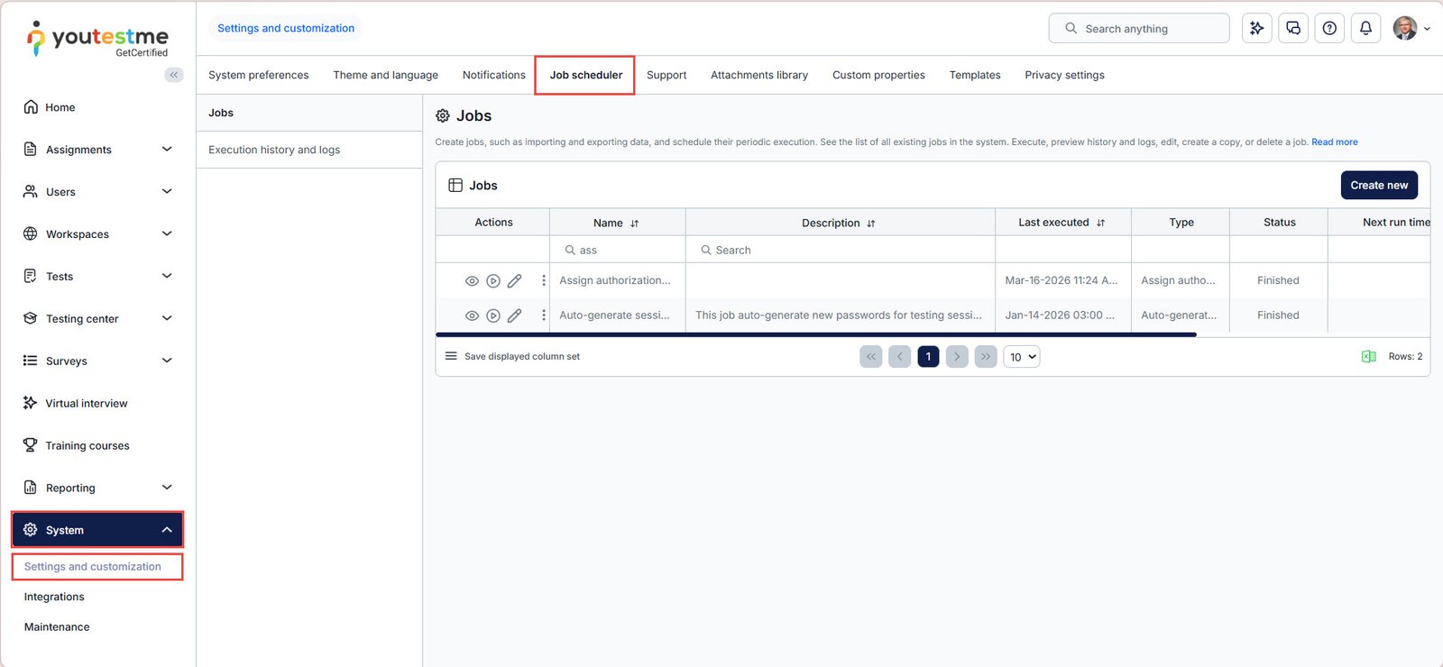 After defining conditions for the desired sections, select the System/System and customization tab and the Job scheduler tab.