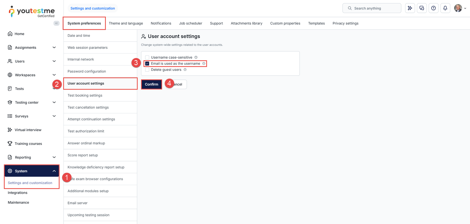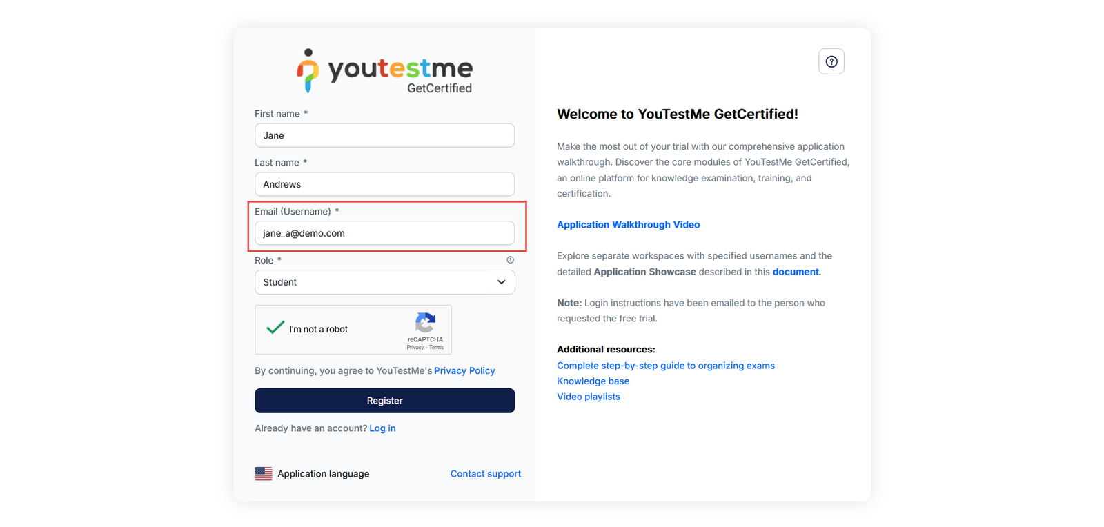 When the Email is used as the username option is enabled, the system automatically enforces the use of the email address as the username for all new candidate accounts. Candidates cannot choose a separate username, as the system requires the username and email to be identical.