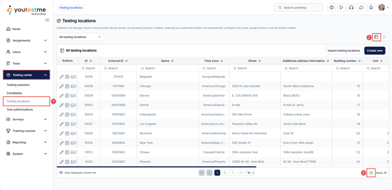- In the left-hand menu, click Testing Center > Testing Locations.