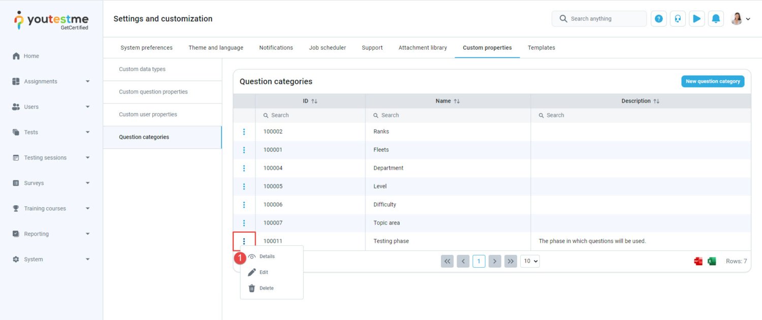 - Navigate to the “Question categories” in the side menu.