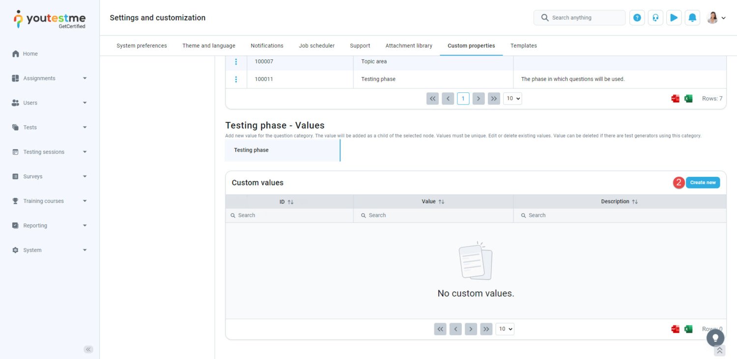 - Navigate to the “Custom properties” tab.