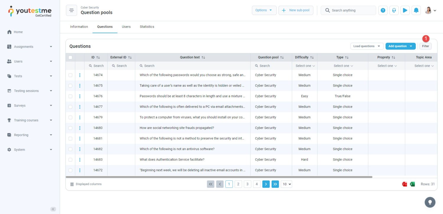 - Open the desired question pool.