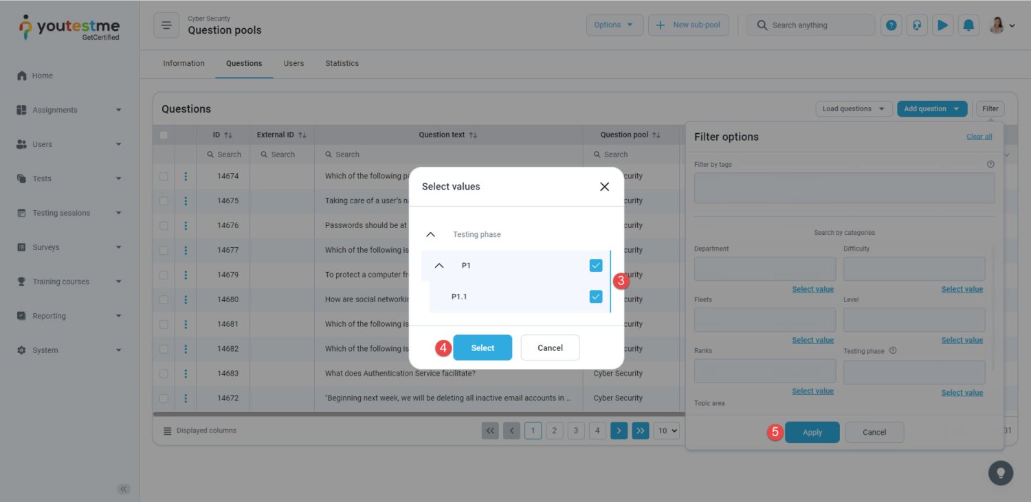 In the example presented above, the candidates will get four questions that have defined P1.2 or P2 values for the testing phase category.