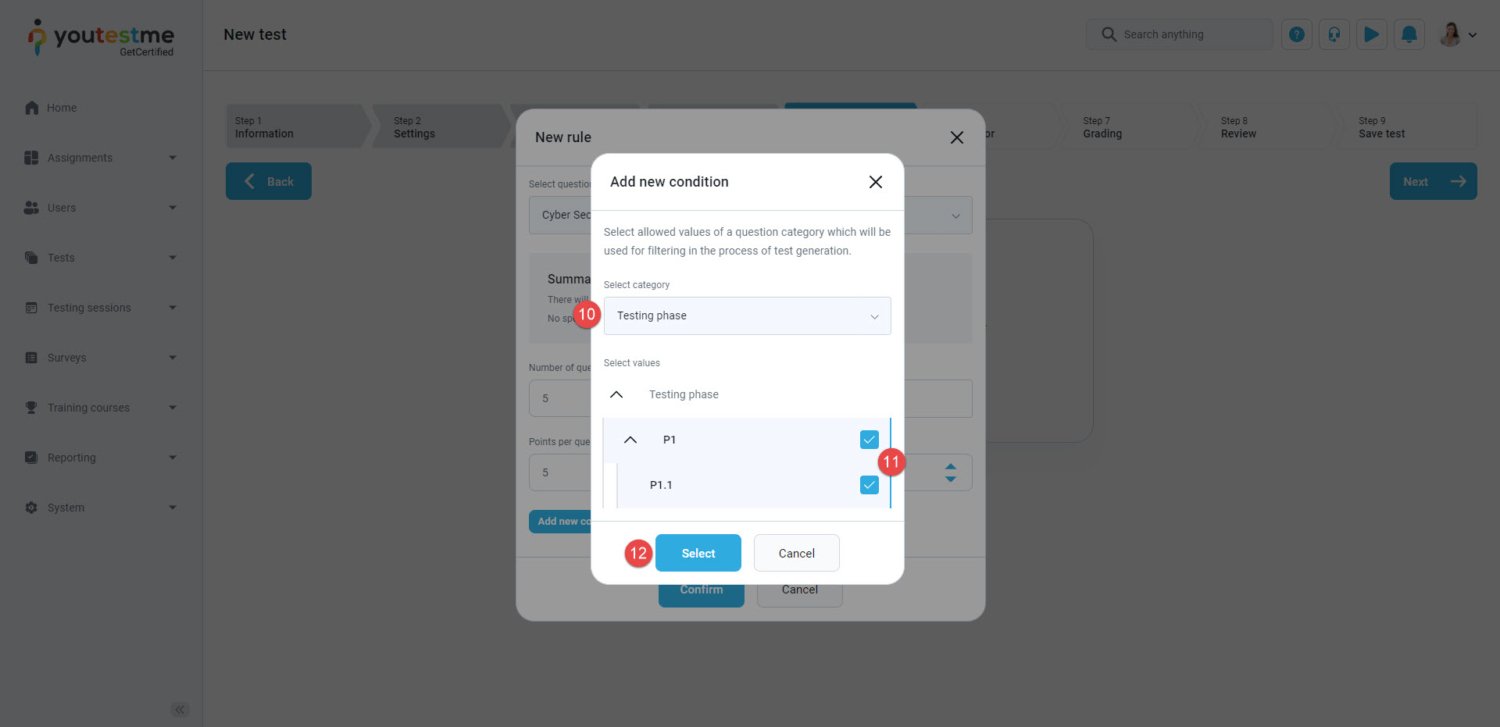 Additionally, if you want to add more conditions for test generation, you can repeat the steps from 9 to 12.
