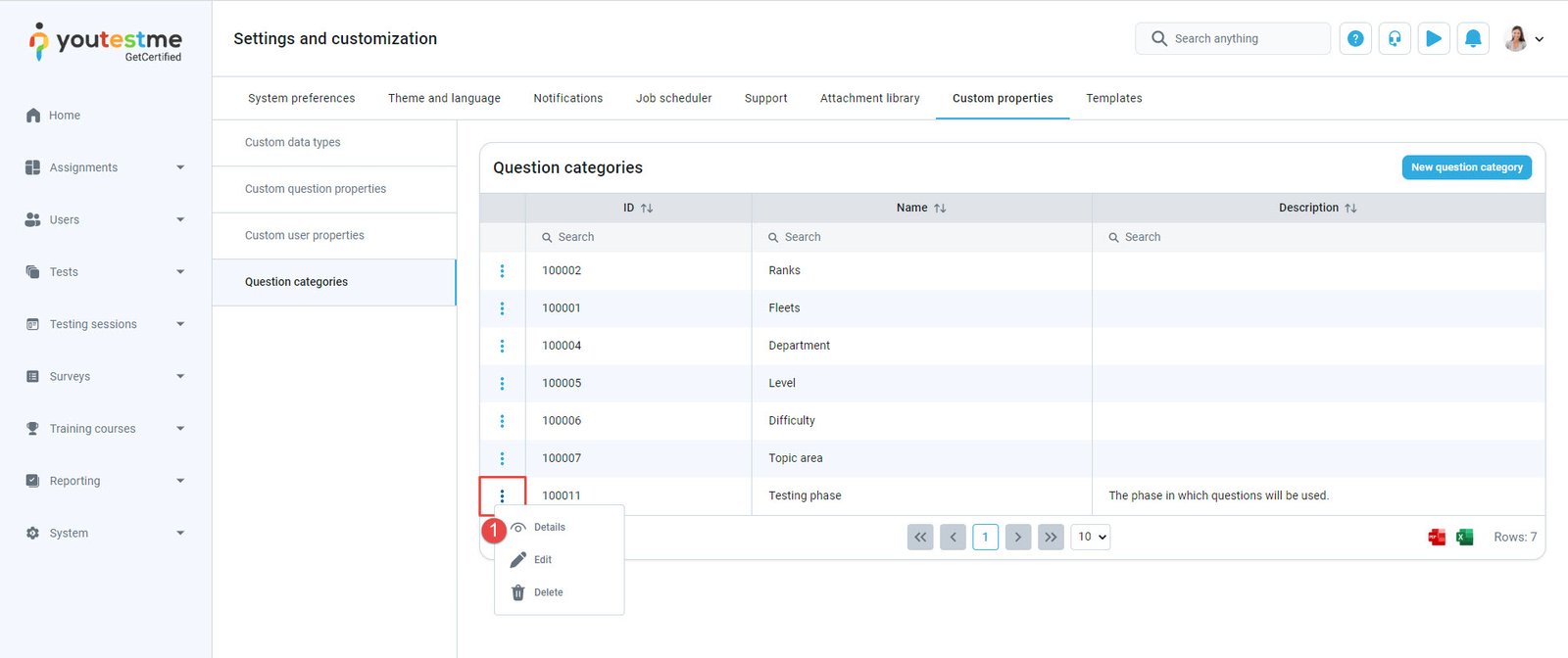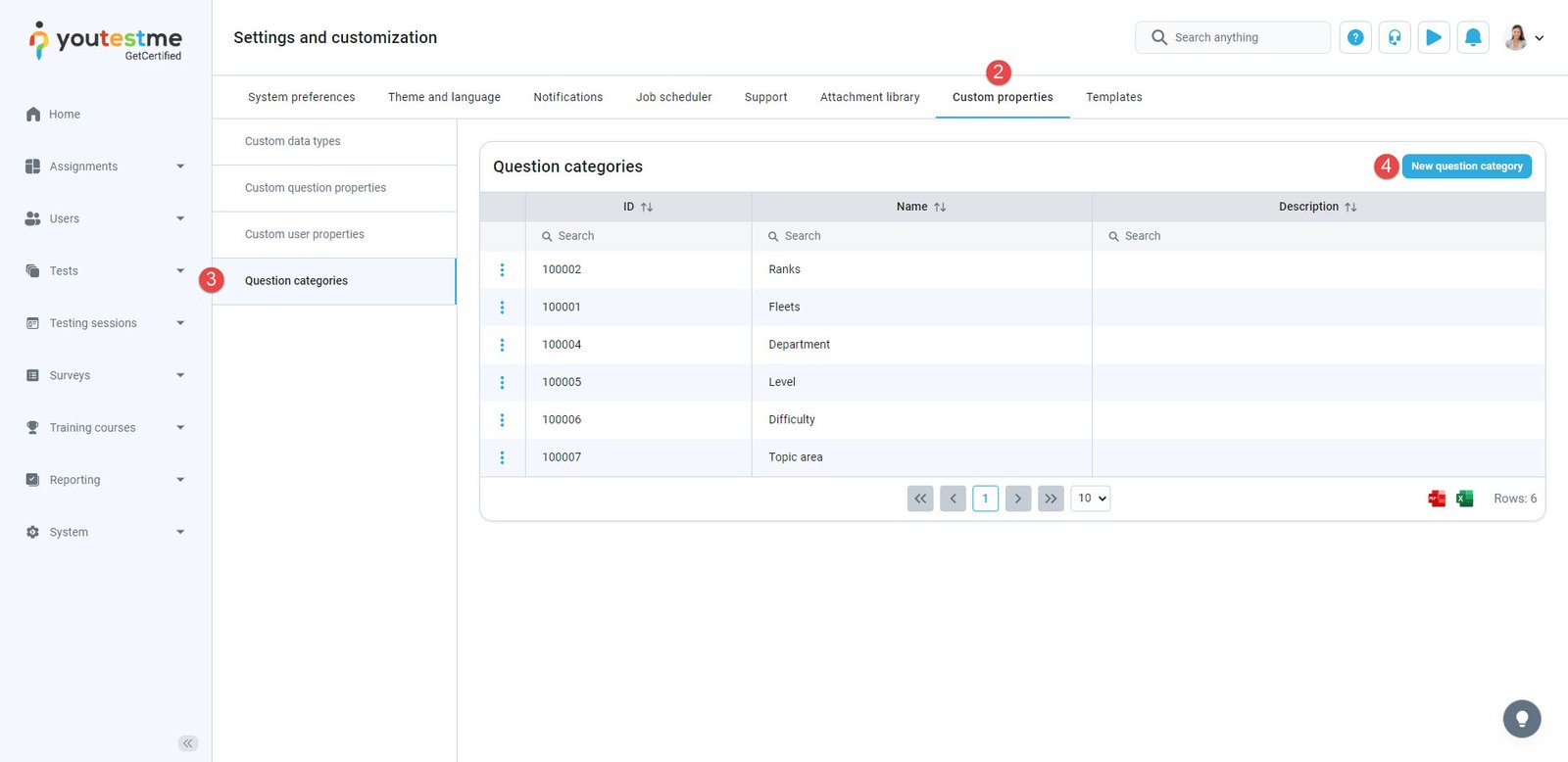 - Navigate to the “Question categories” in the side menu.
