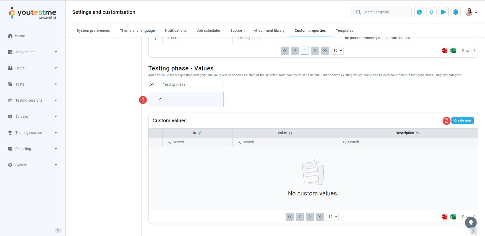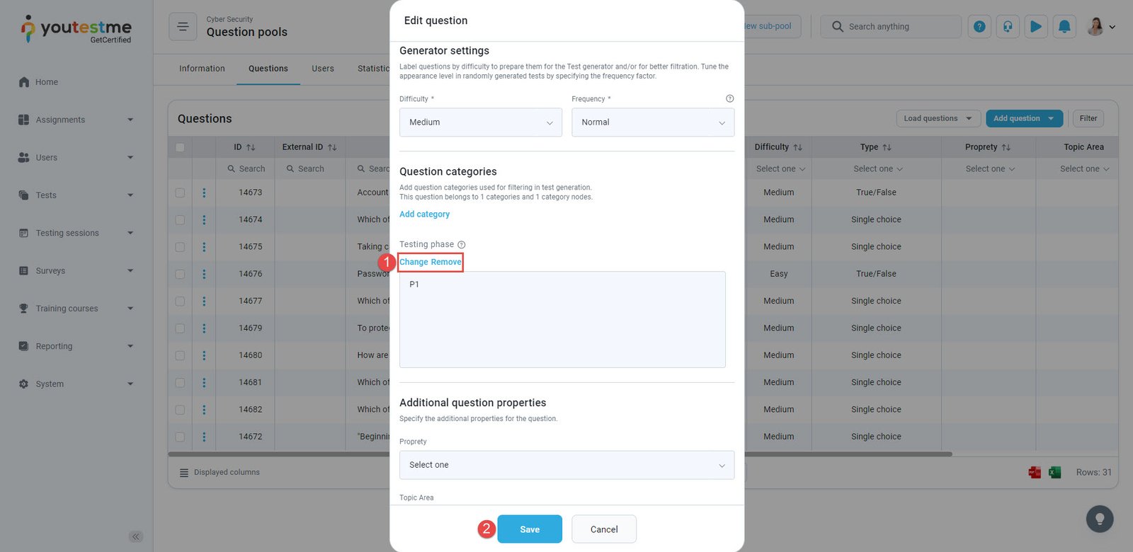 In the example presented above, the candidates will get four questions that have defined P1.2 or P2 values for the testing phase category.