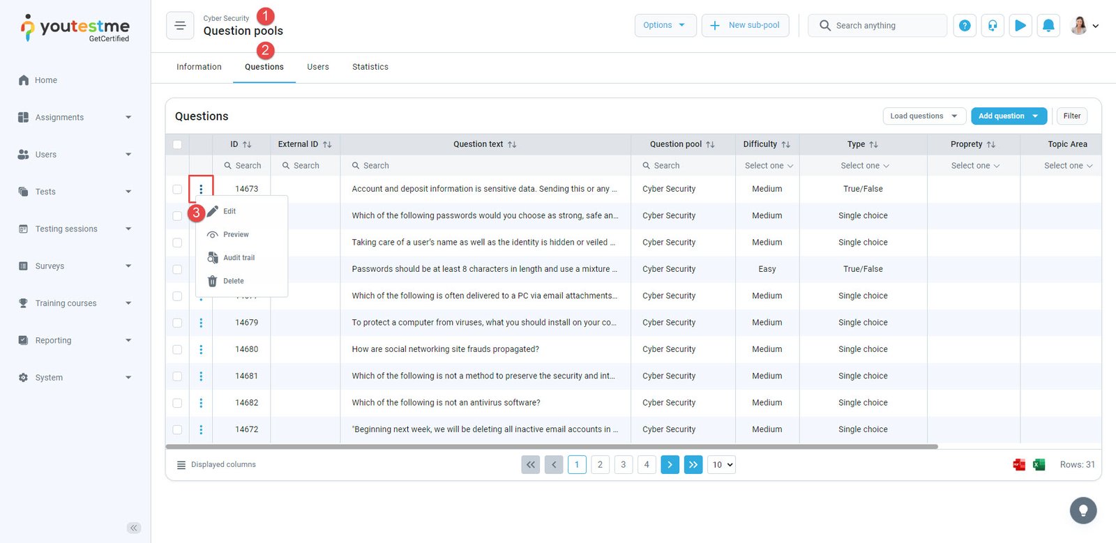 - Open the desired question pool.