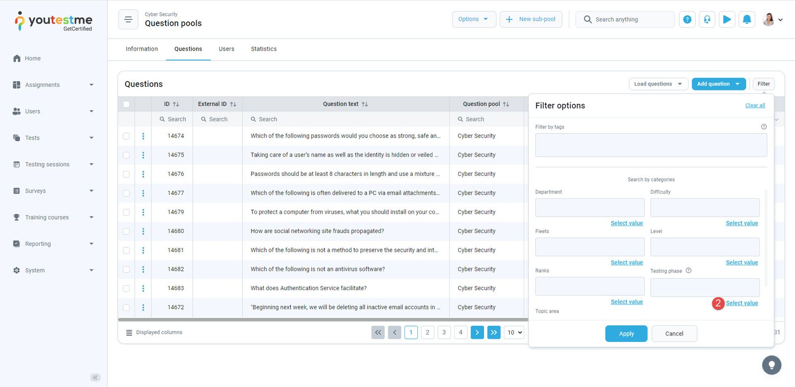 - Choose the desired question pool based on which you want to create a test.