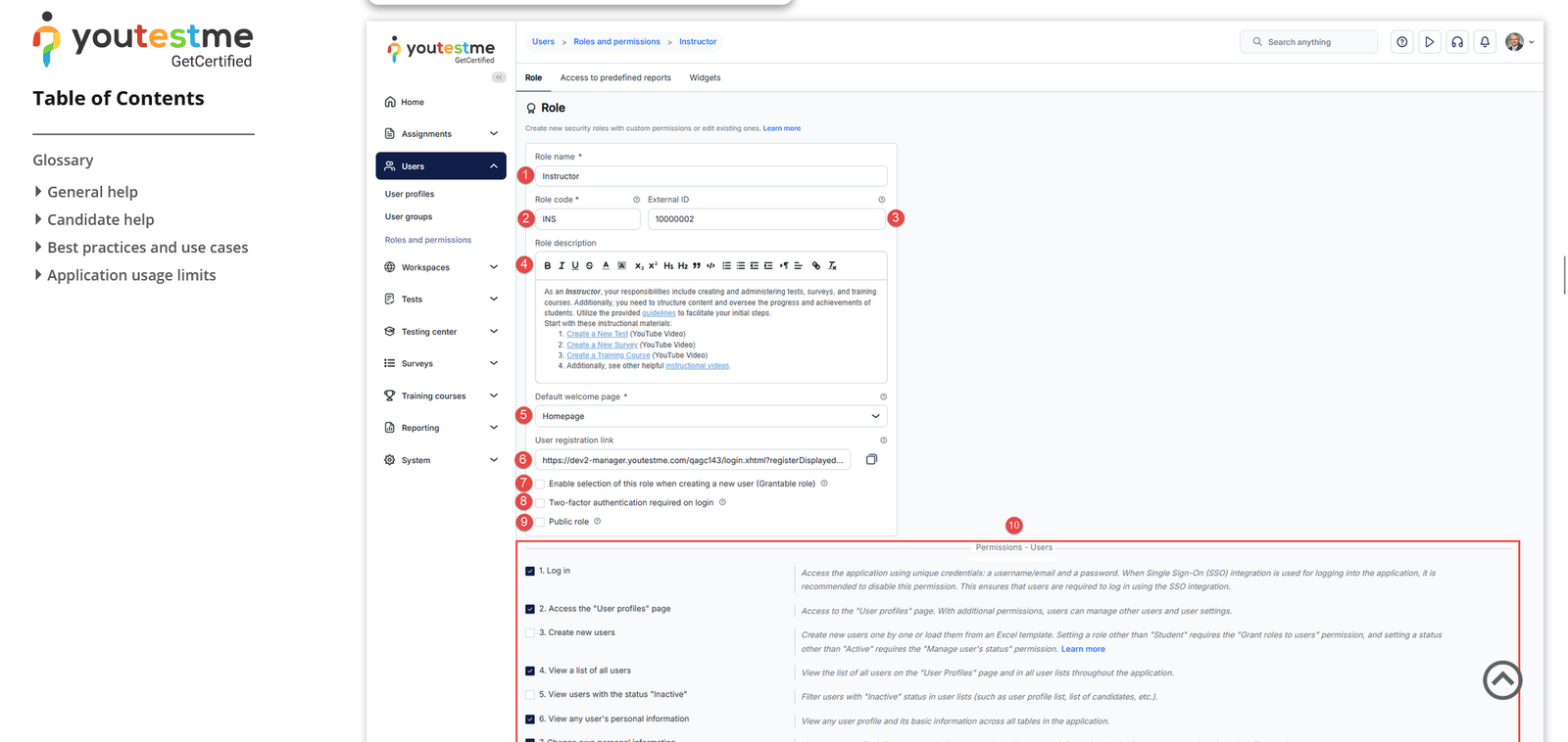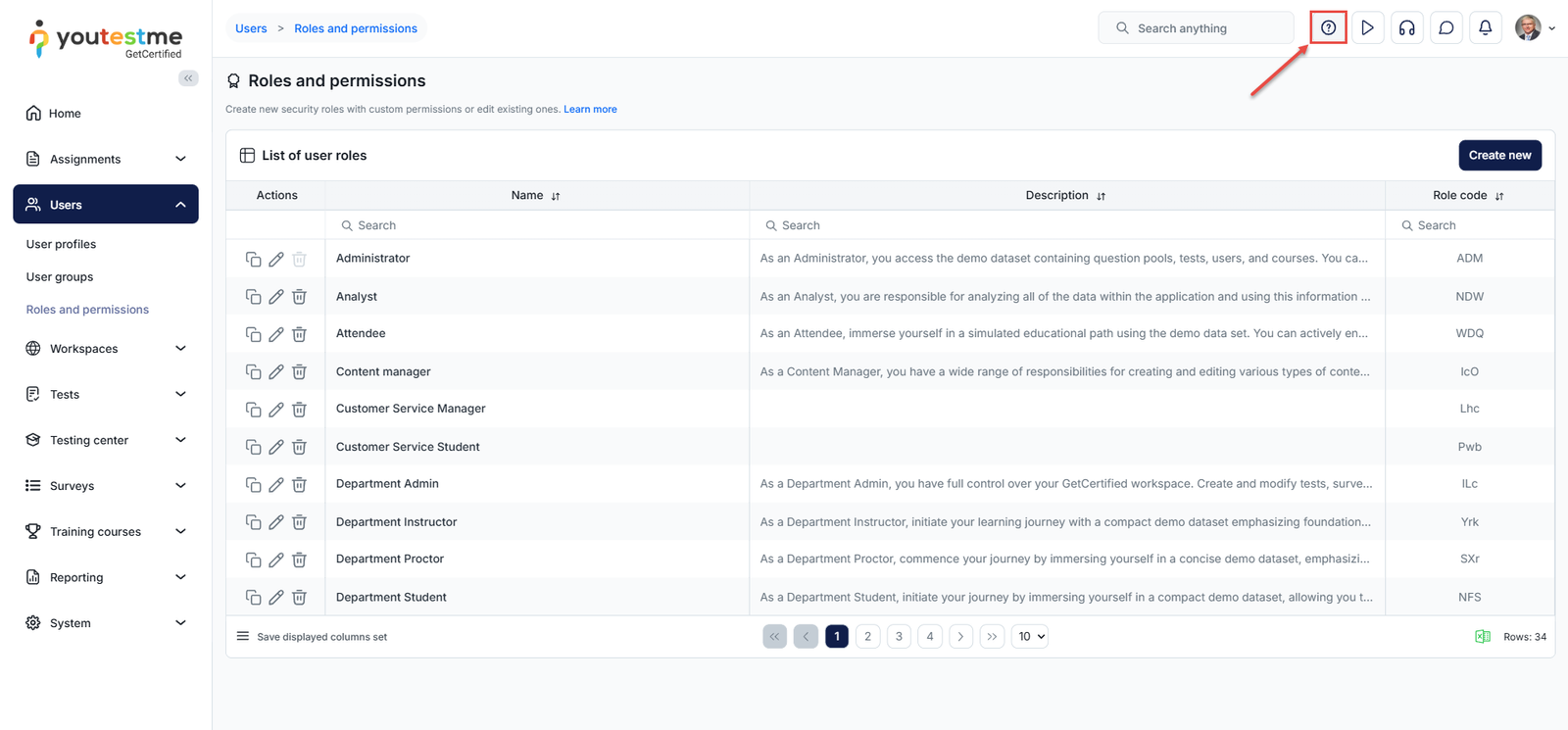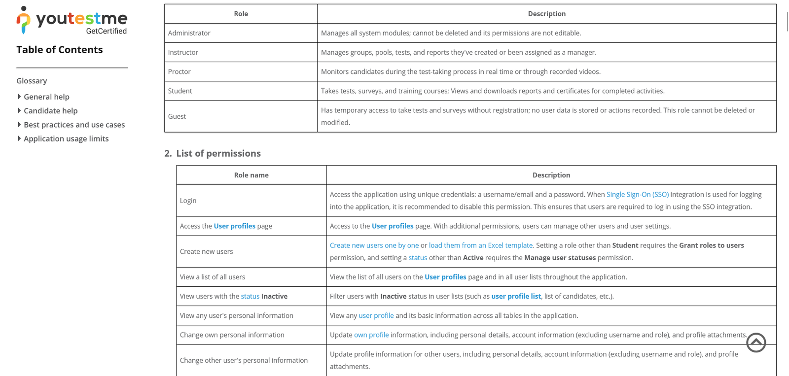 After clicking on the question mark icon, you will be directed to the “Roles and Permissions” section in our Help System