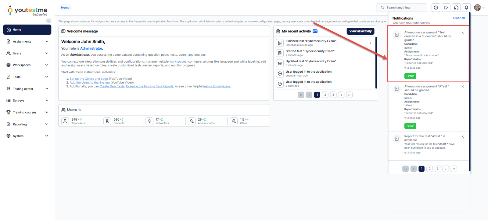 When the On Manager’s Approval option is selected, the test administrator will be notified that submissions requiring manager approval are available once candidates complete their attempts. If the test includes questions that need manual grading, grading must be completed before the results can be released. For more information on how to grade a test, please refer to this article.
