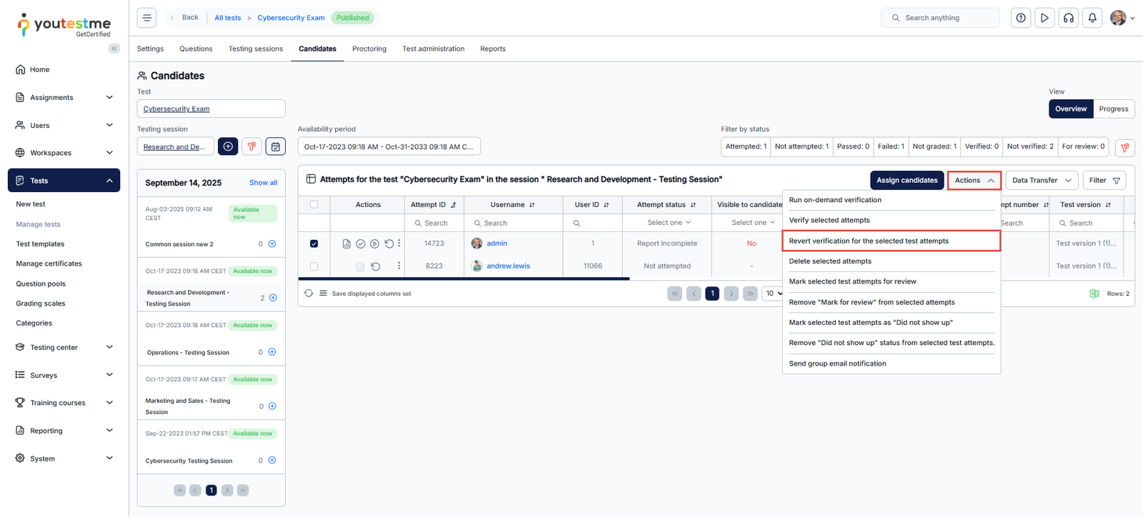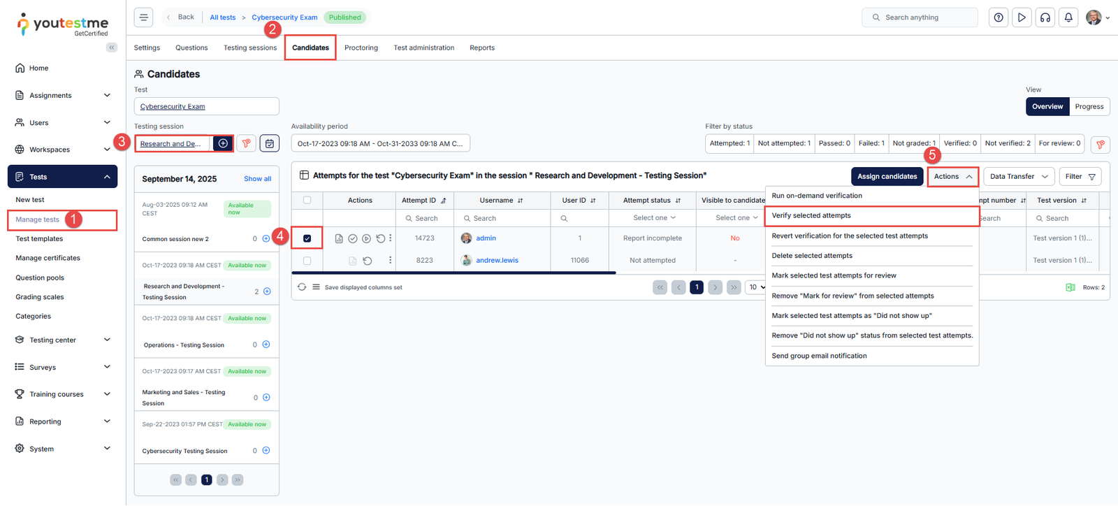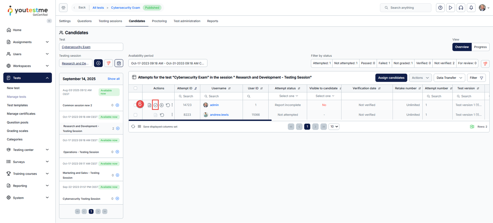 - Alternatively, you can verify each attempt individually by clicking the Verify Attempt for This Candidate button in the Actions column.
