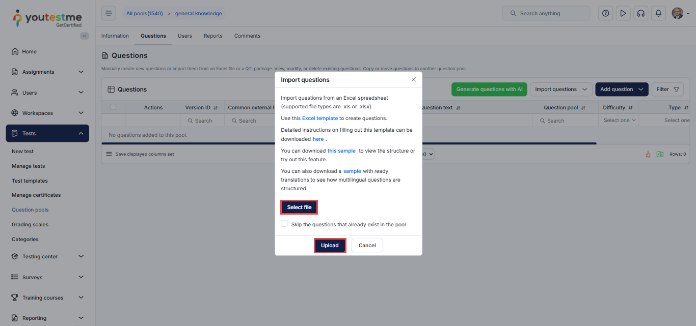 This article explains how to import questions with assigned category values into a question pool using an Excel template.