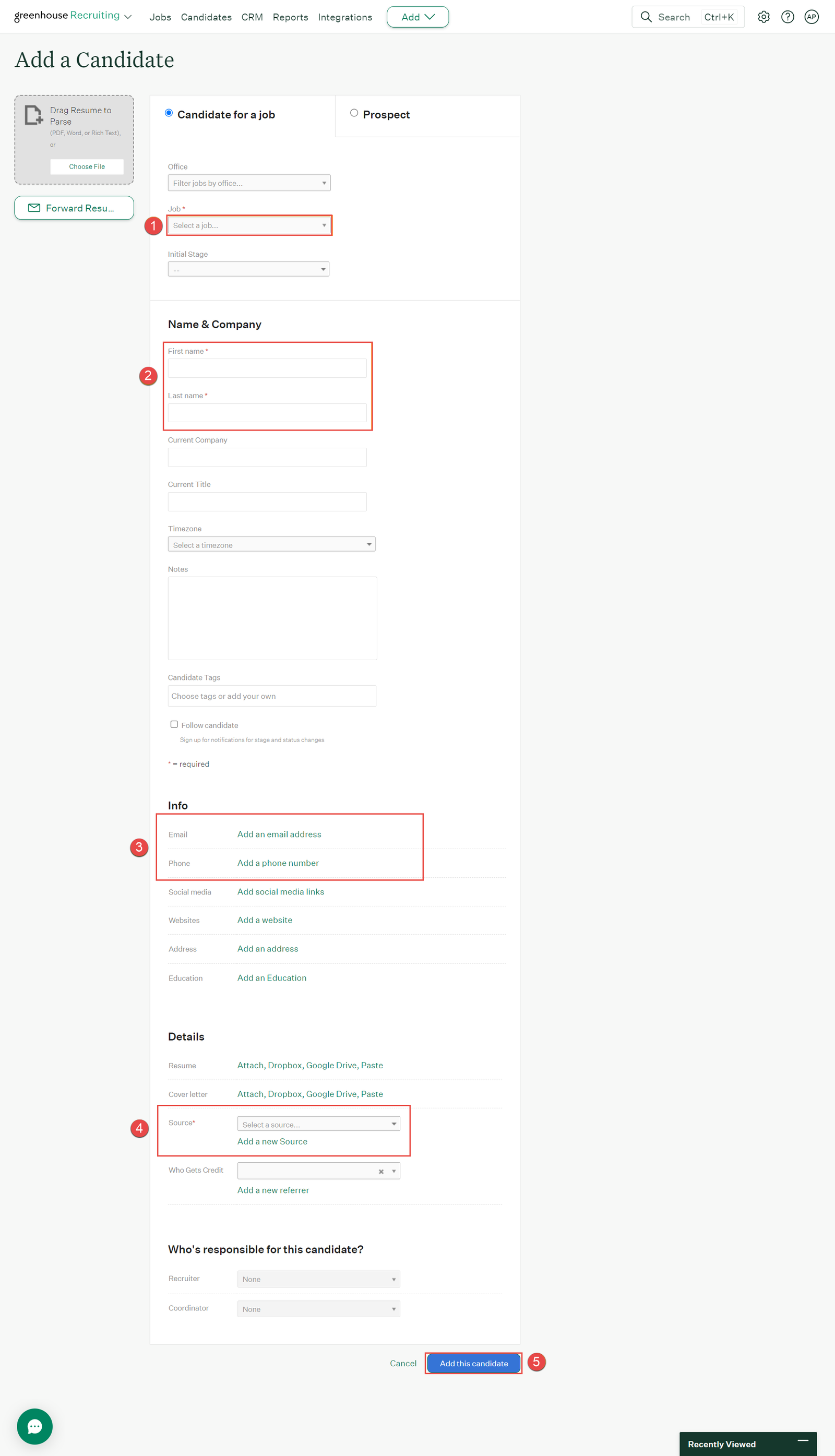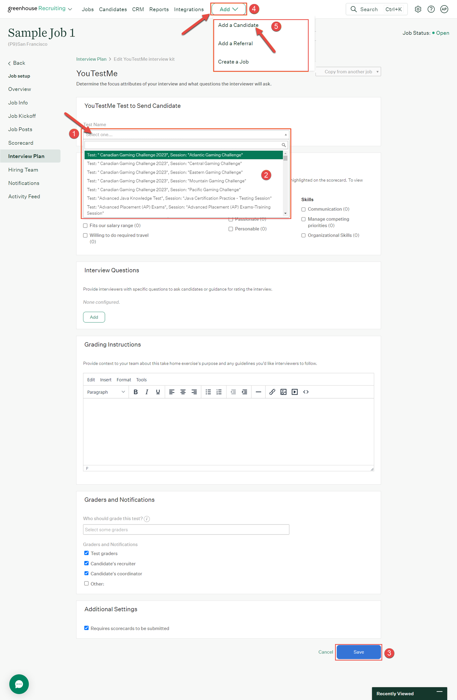 1. -5. Assign candidates by navigating to ‘Add > Add a Candidate.’