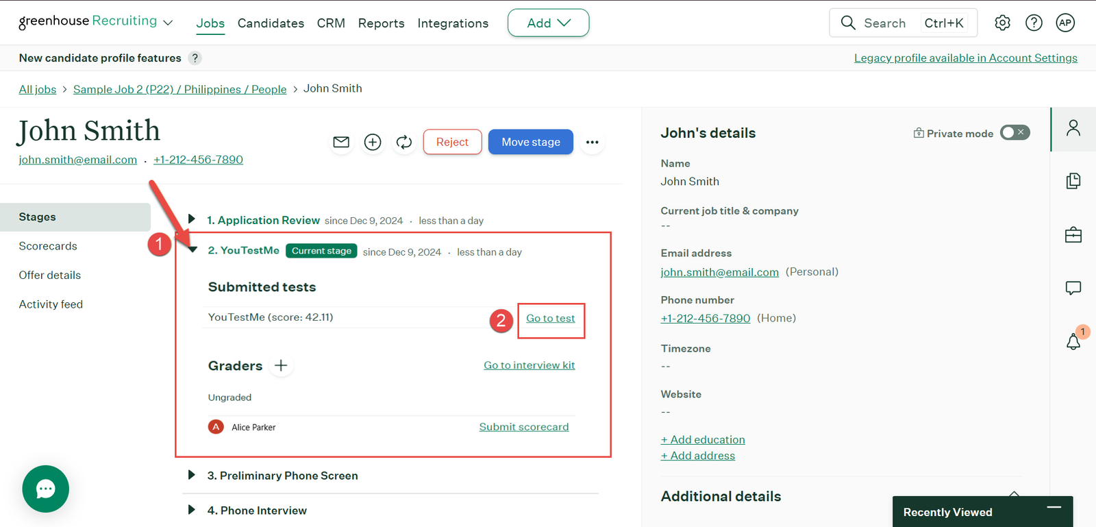 • Navigate to the YouTestMe stage in Greenhouse.