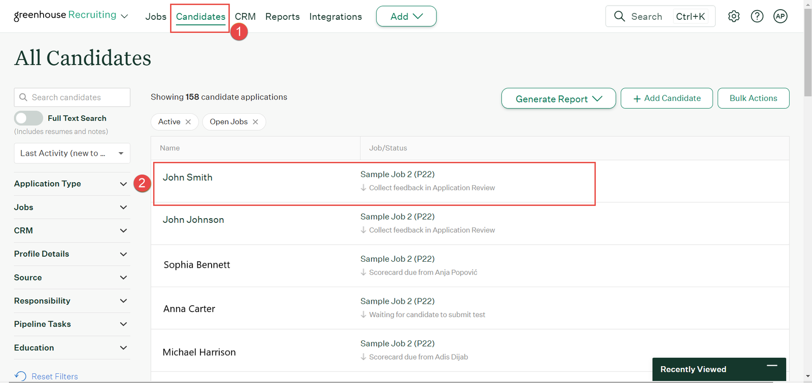 1. Navigate to the Candidates tab.