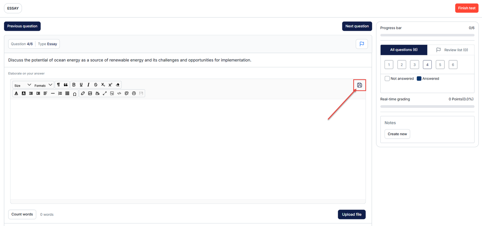 Important Note: For tests containing essay questions, ensure you click “Save” after each response. Failure to save may prevent the system from recording your answers due to browser lockdown security restrictions.