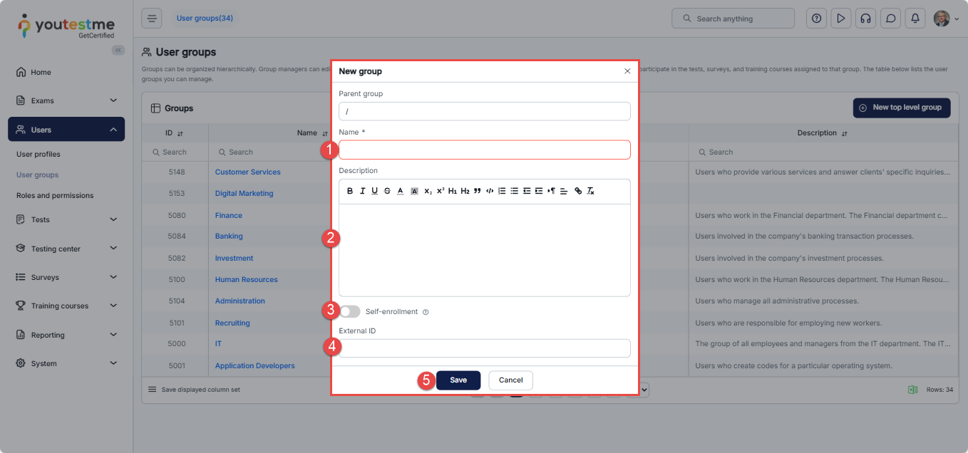 - Click on the Save button to create a new group.