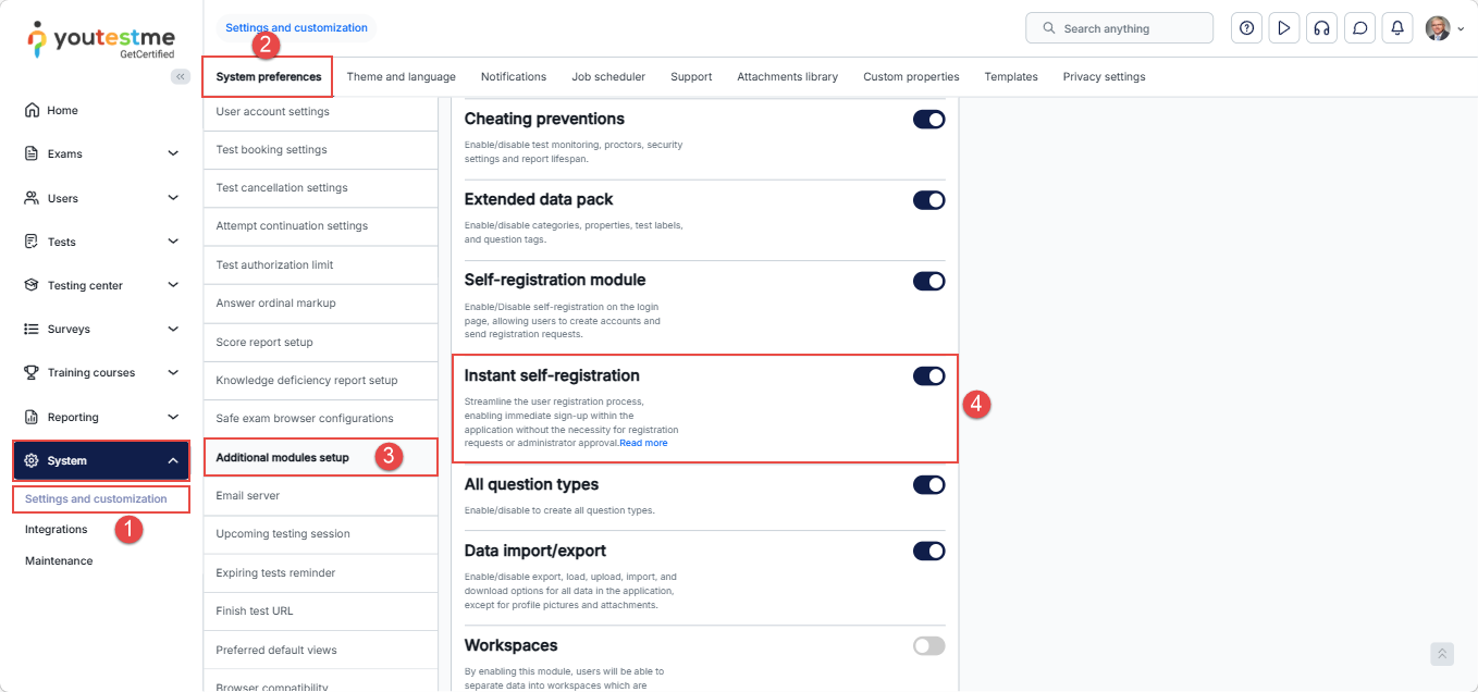 Before sending the registration link, it is essential to enable the Instant self-registration module by following these steps: