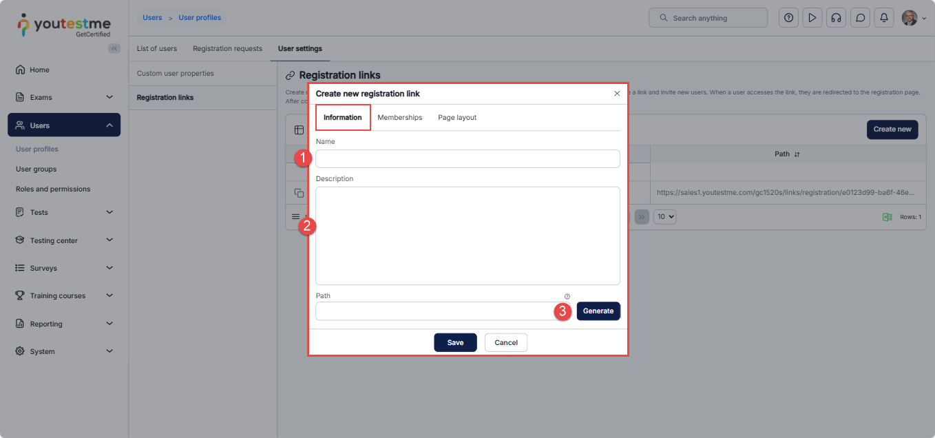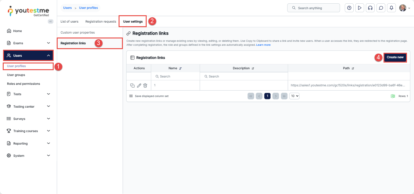 - Go to the Registration links tab.