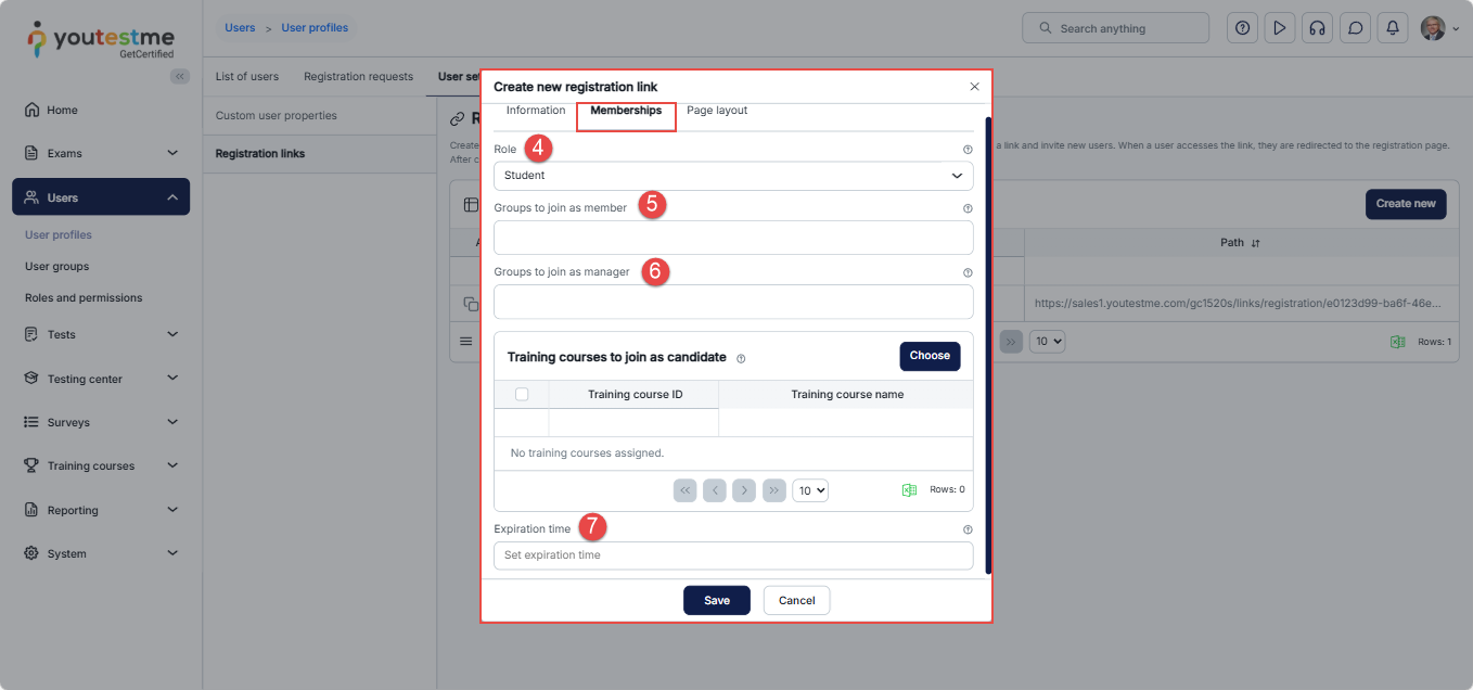 - If an expiration date is set, the registration link will be valid until that date.