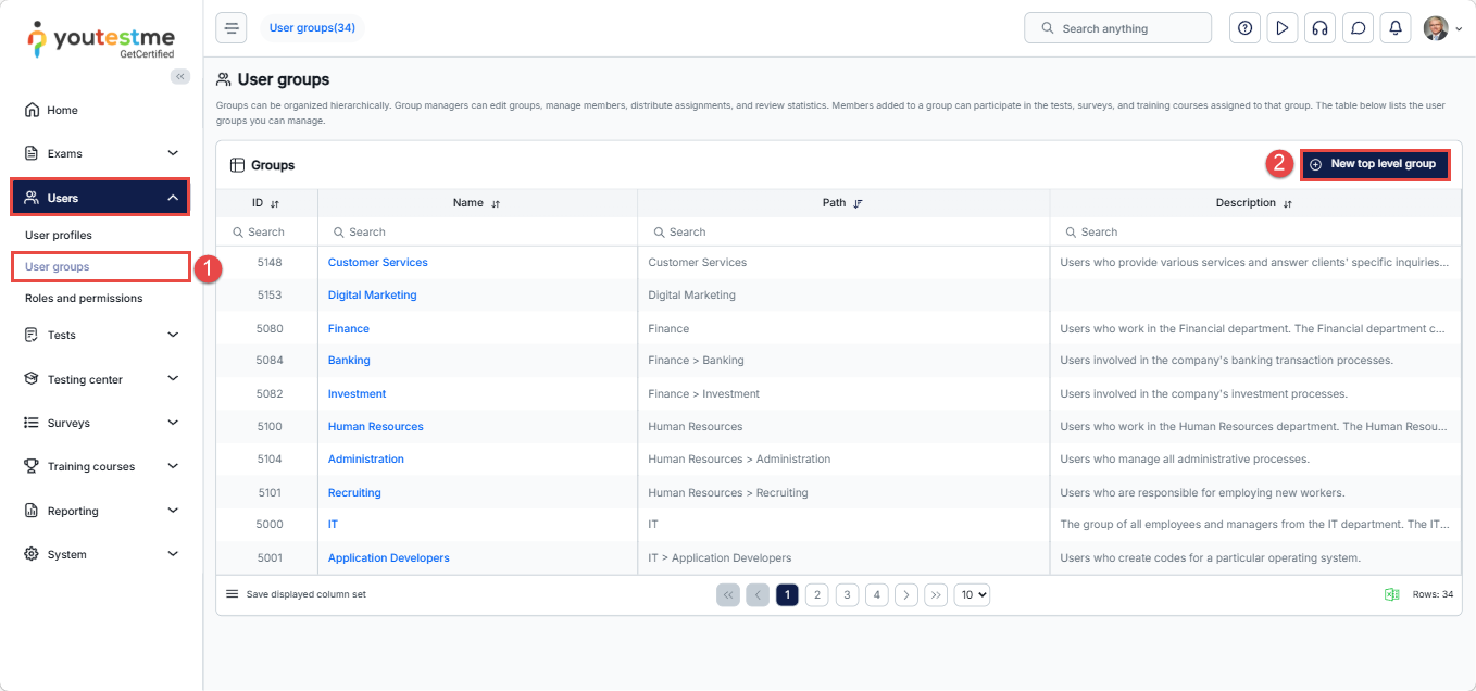 - Click on the New top-level group button.