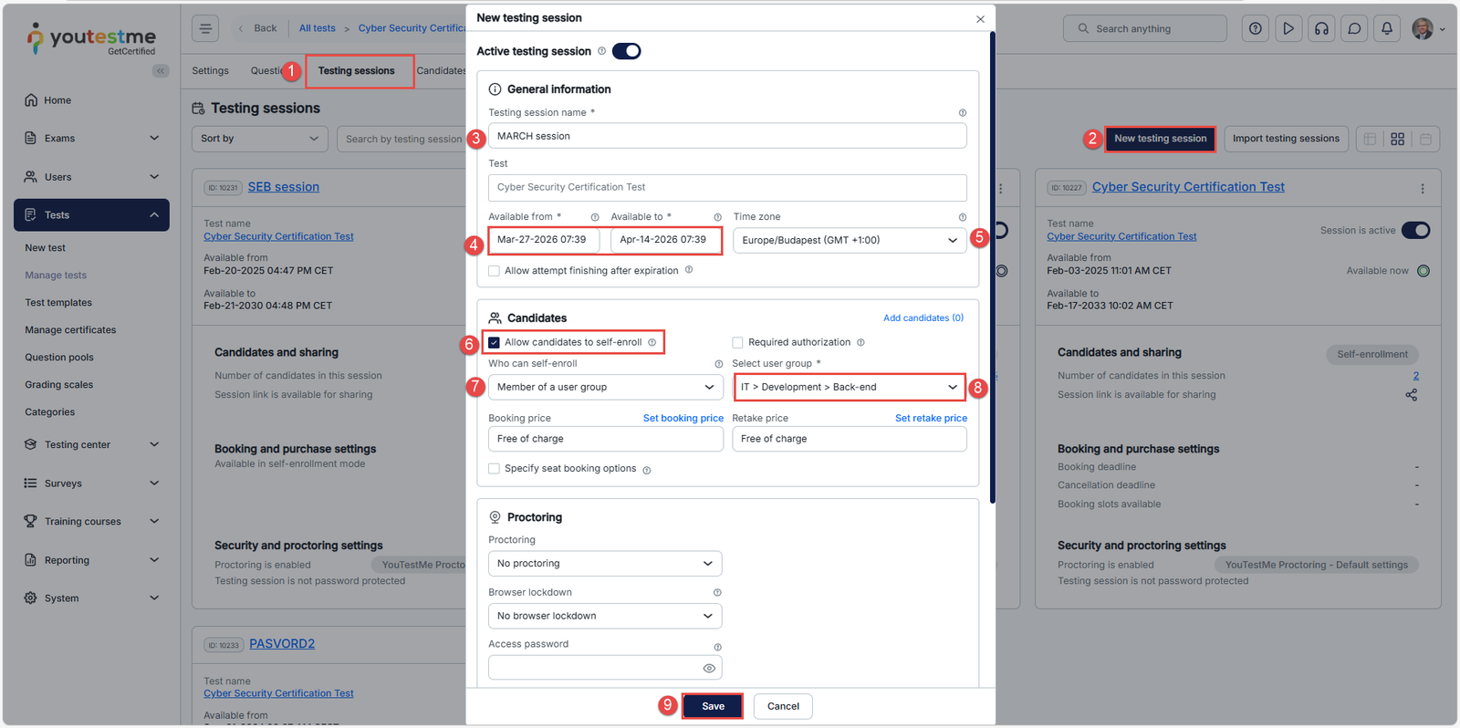 Creating Testing Sessions and Linking Them to User Groups and Locations