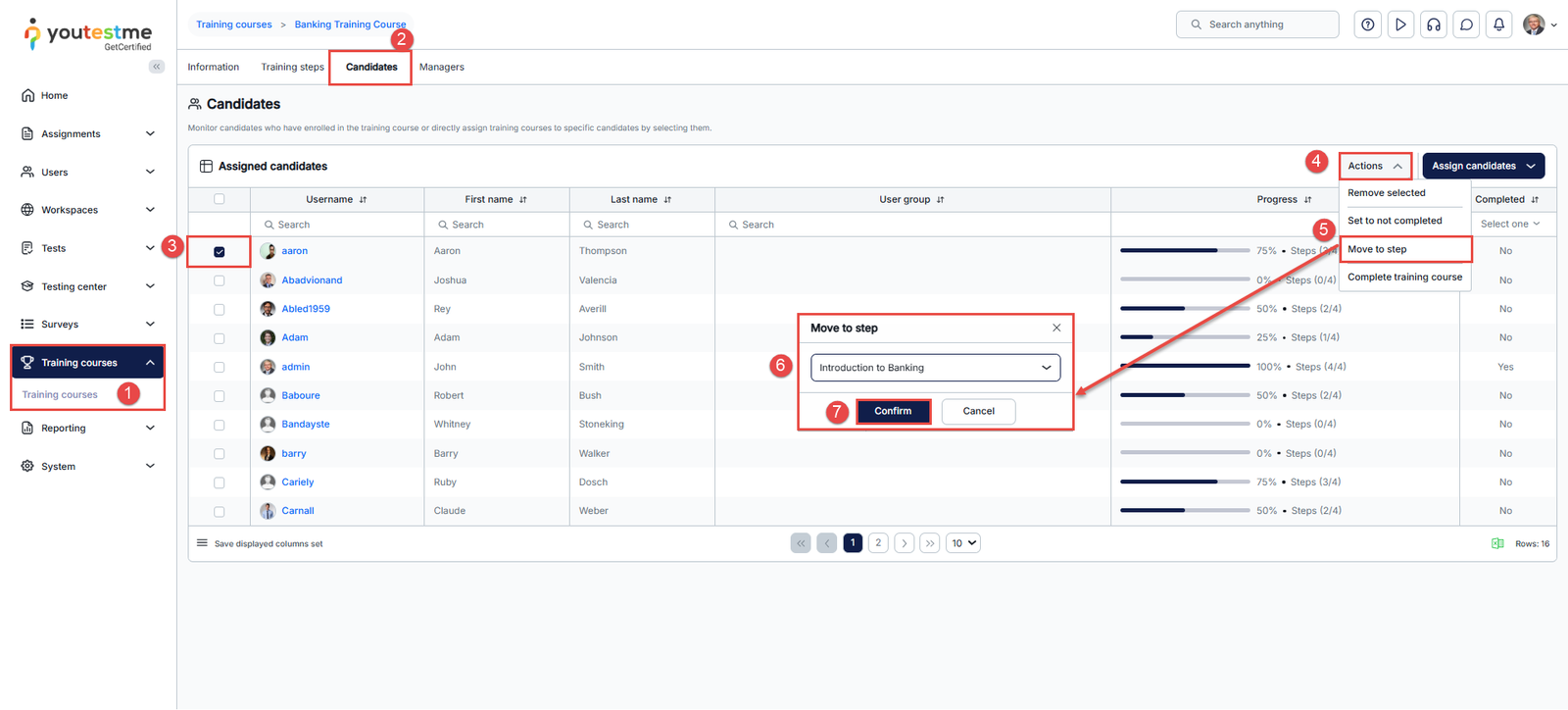 - Upon accessing the training course, navigate to the Candidates tab.