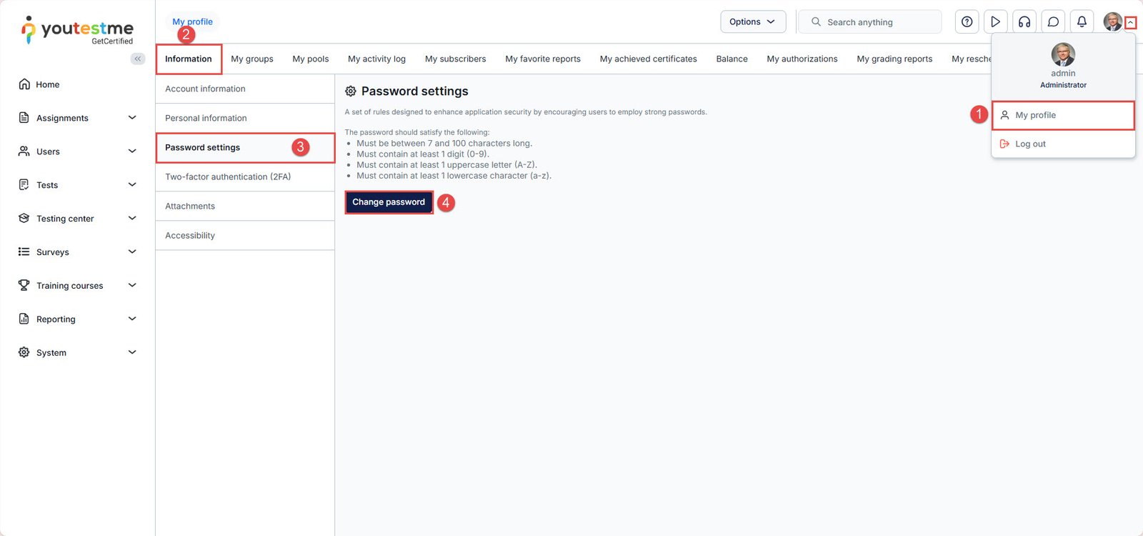 - Click the Change password button to update it.