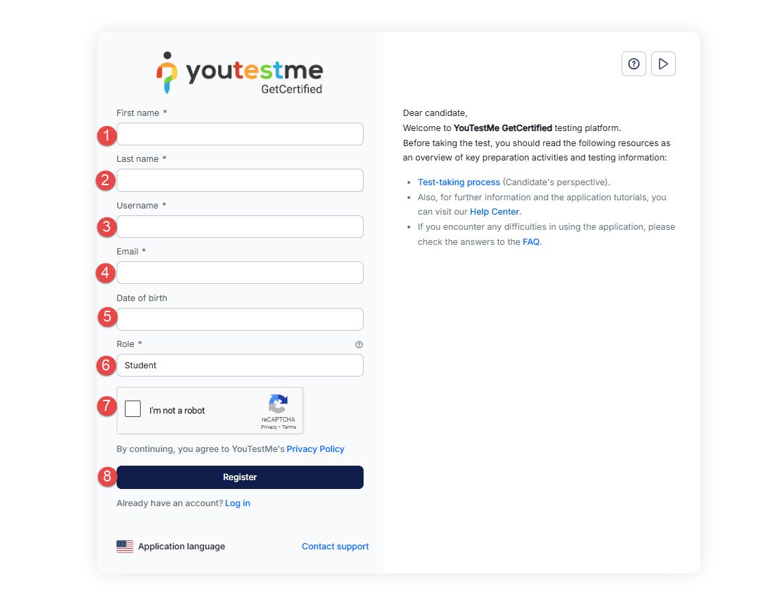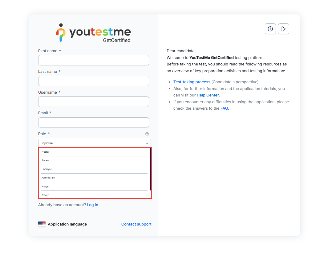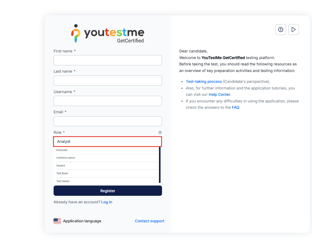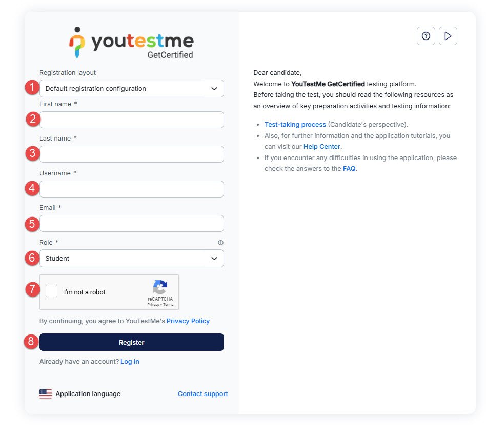 Important note: If the Self-Registration module is disabled, candidates will be redirected to the login page instead of the registration page.