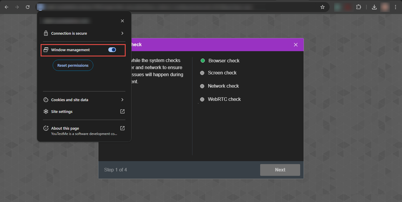 - Depending on the browser used, candidates may be asked to allow the system to manage windows on all their displays. For more information, please visit this article.