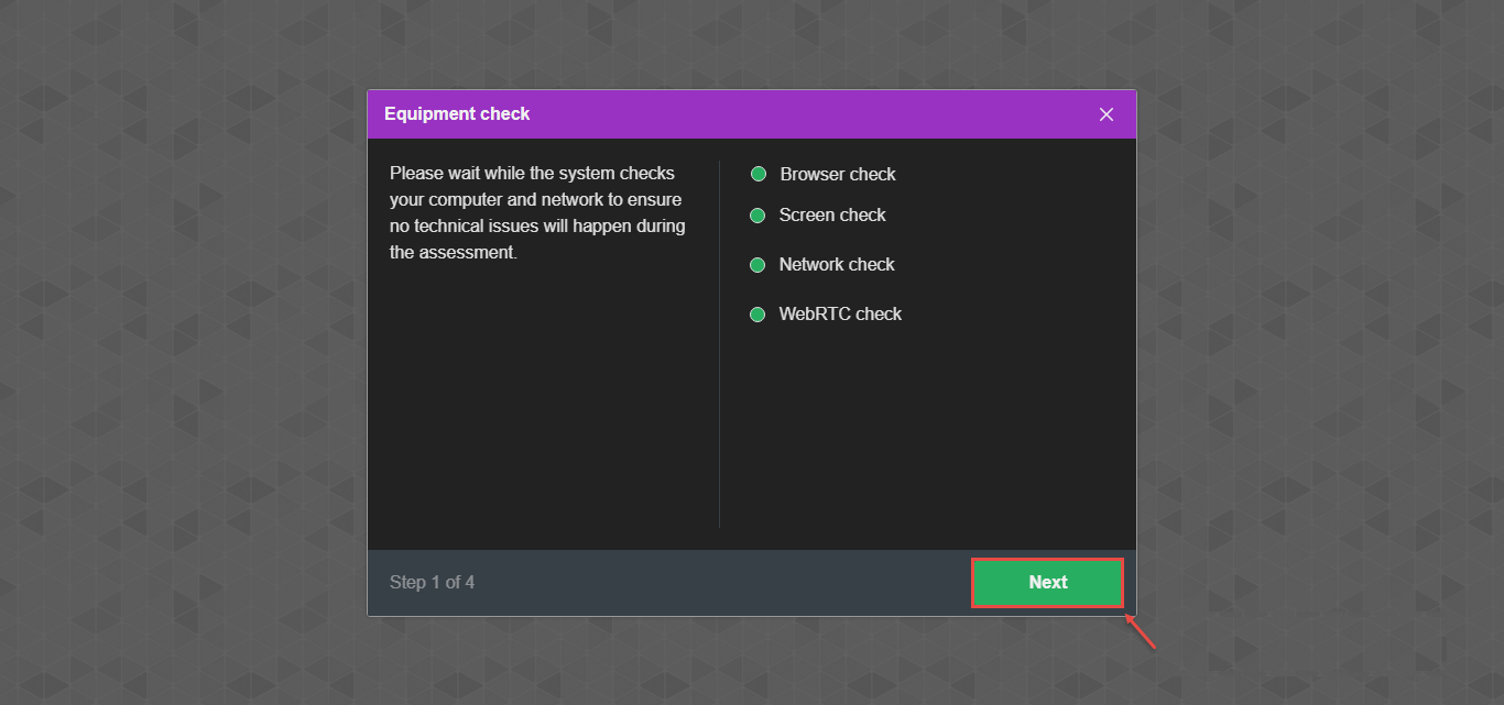 When a candidate starts the test, they must go through the equipment check process:
