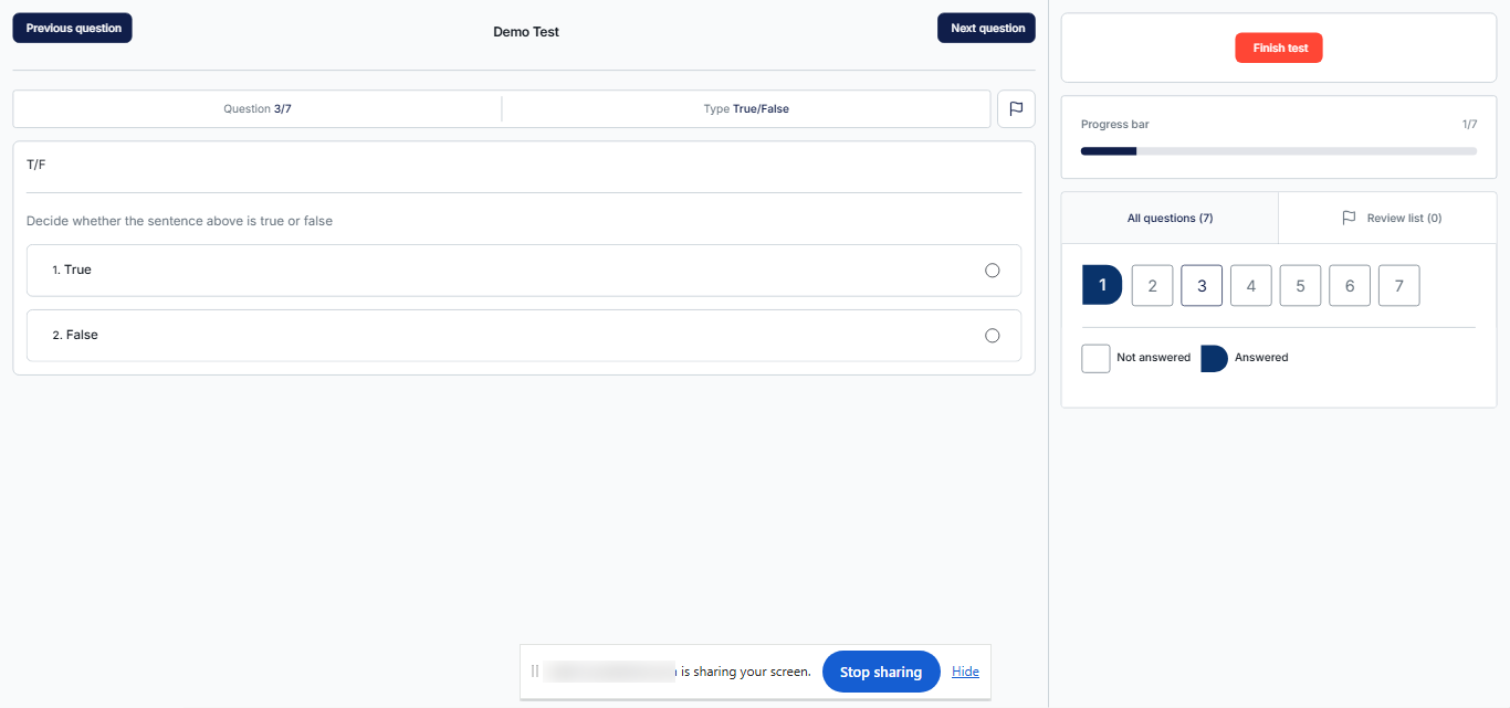 This article explains how to administer proctored tests on the YouTestMe platform, in which candidates only need to share their screens. In this configuration, candidates do not need to provide access to their camera or microphone.