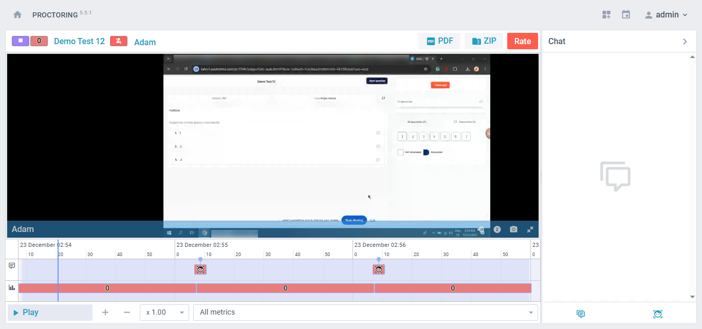 The proctor will be redirected to the candidate’s recording, where they can review and rate the attempt.