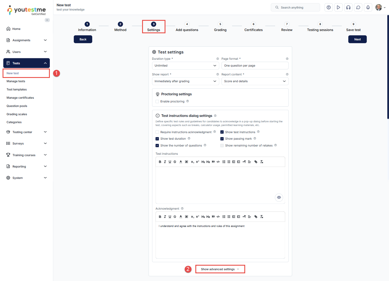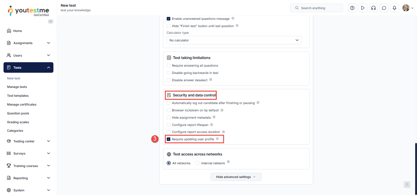 To enable this option while creating a new test, follow these steps: