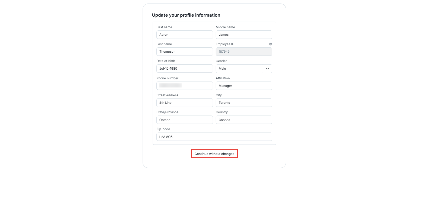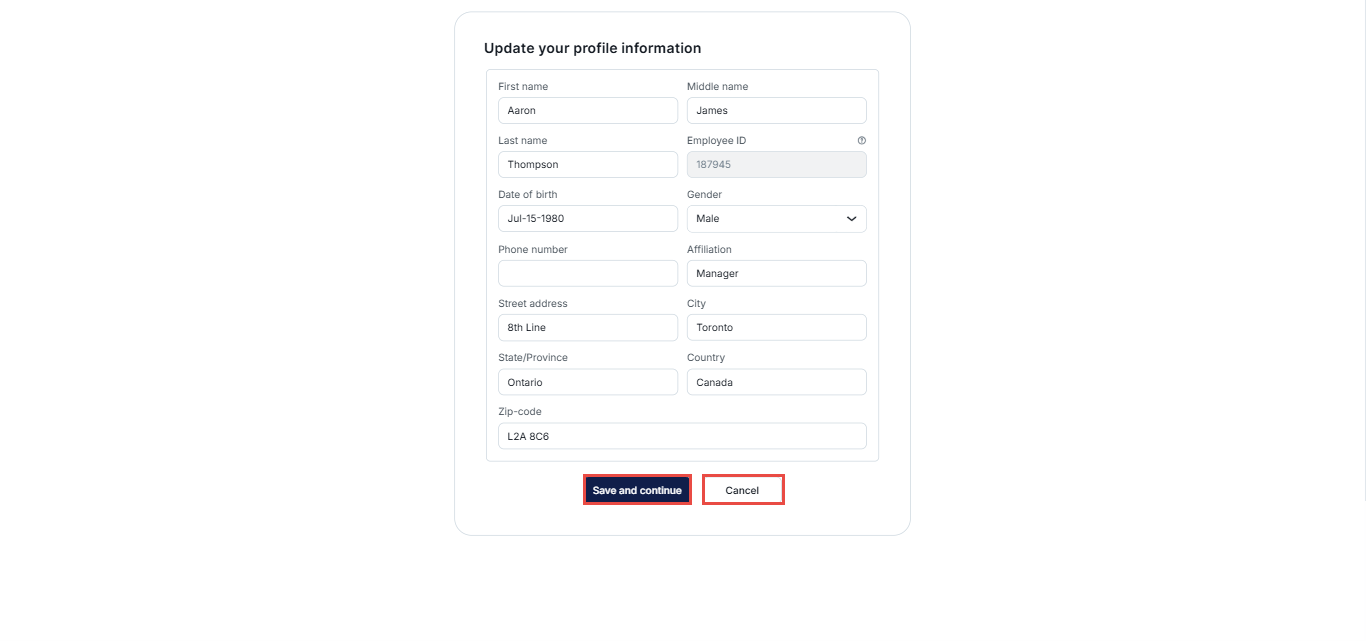When a candidate clicks Start Test, a screen displaying their profile information will appear. They can either confirm the existing details or make changes before starting the test.