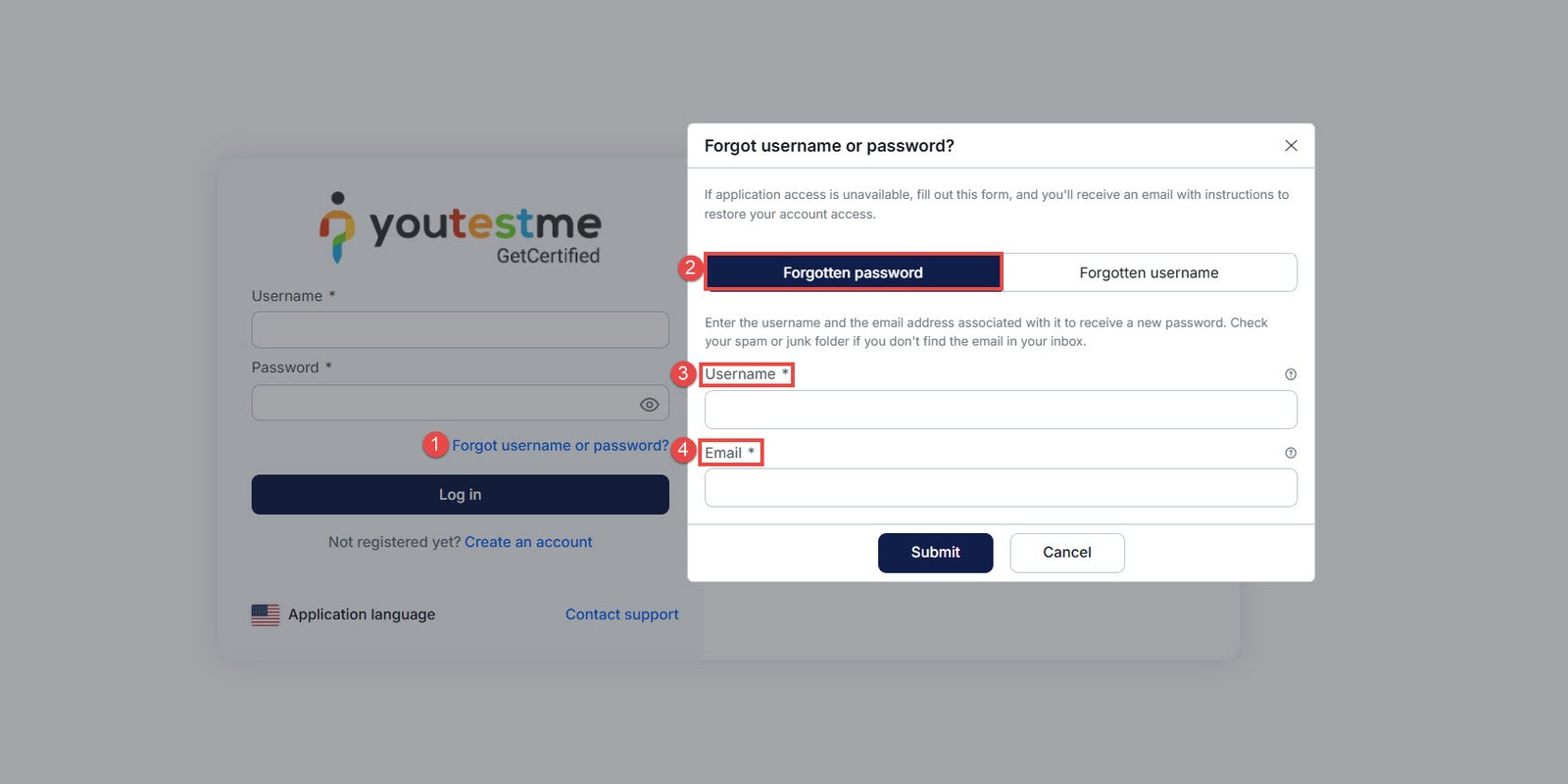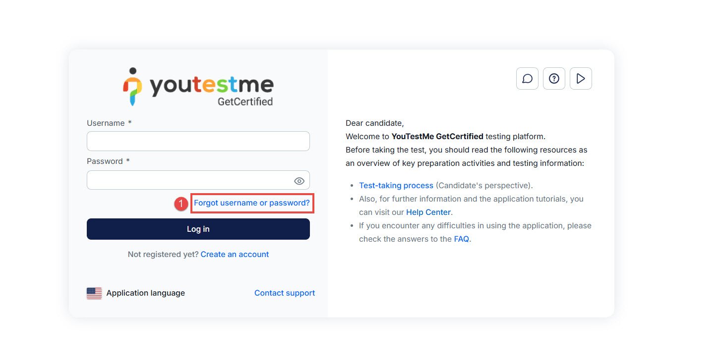 - Enter your username and the email address associated with your GetCertified account.
