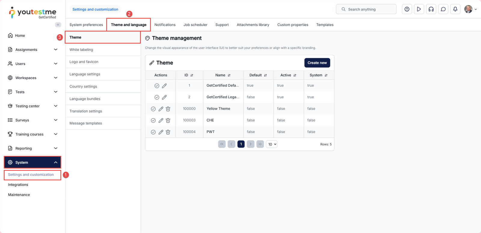 - Navigate to the Theme and language tab.
