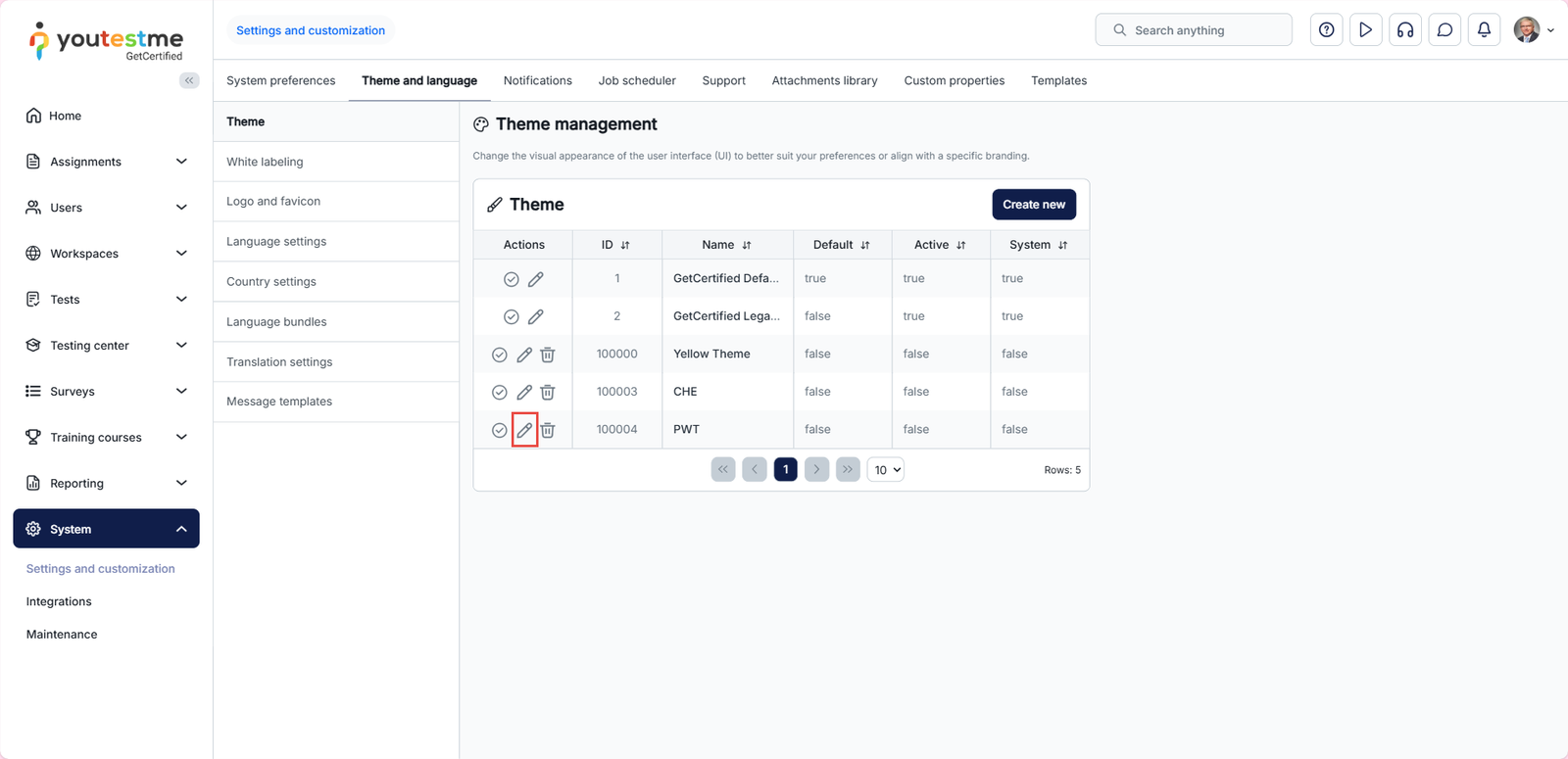 To scale font size, select the Edit option for the desired theme.