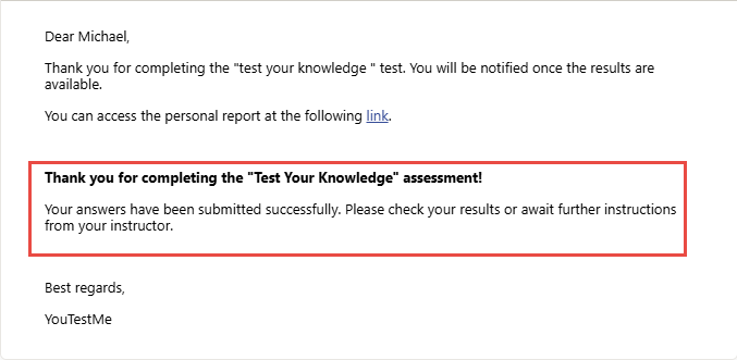 Candidates will now receive the test completion message as part of the automated “Test finished” email.